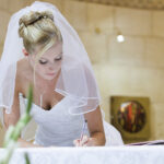robe de mariée bustier avec voile signature de la mariée mariage église