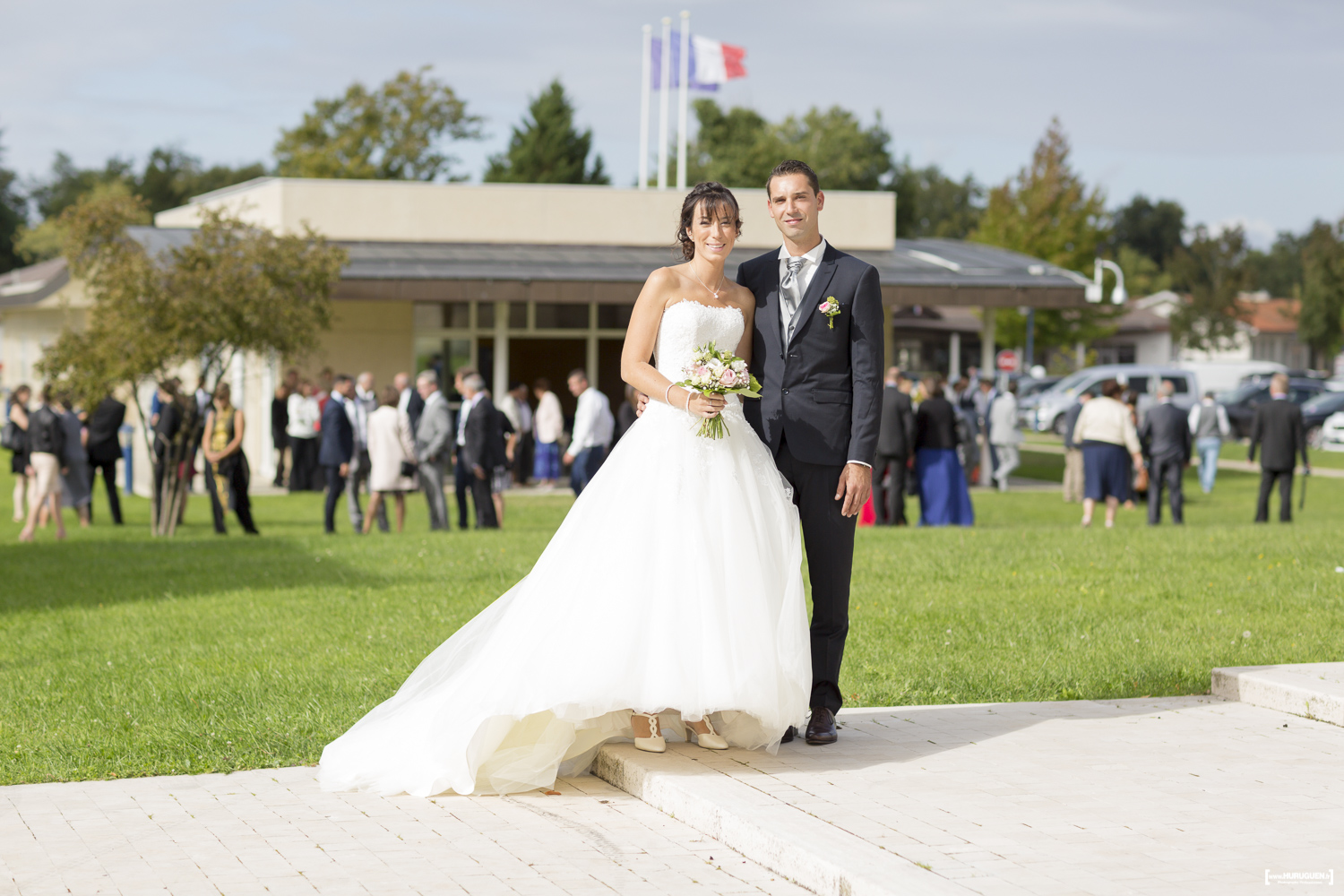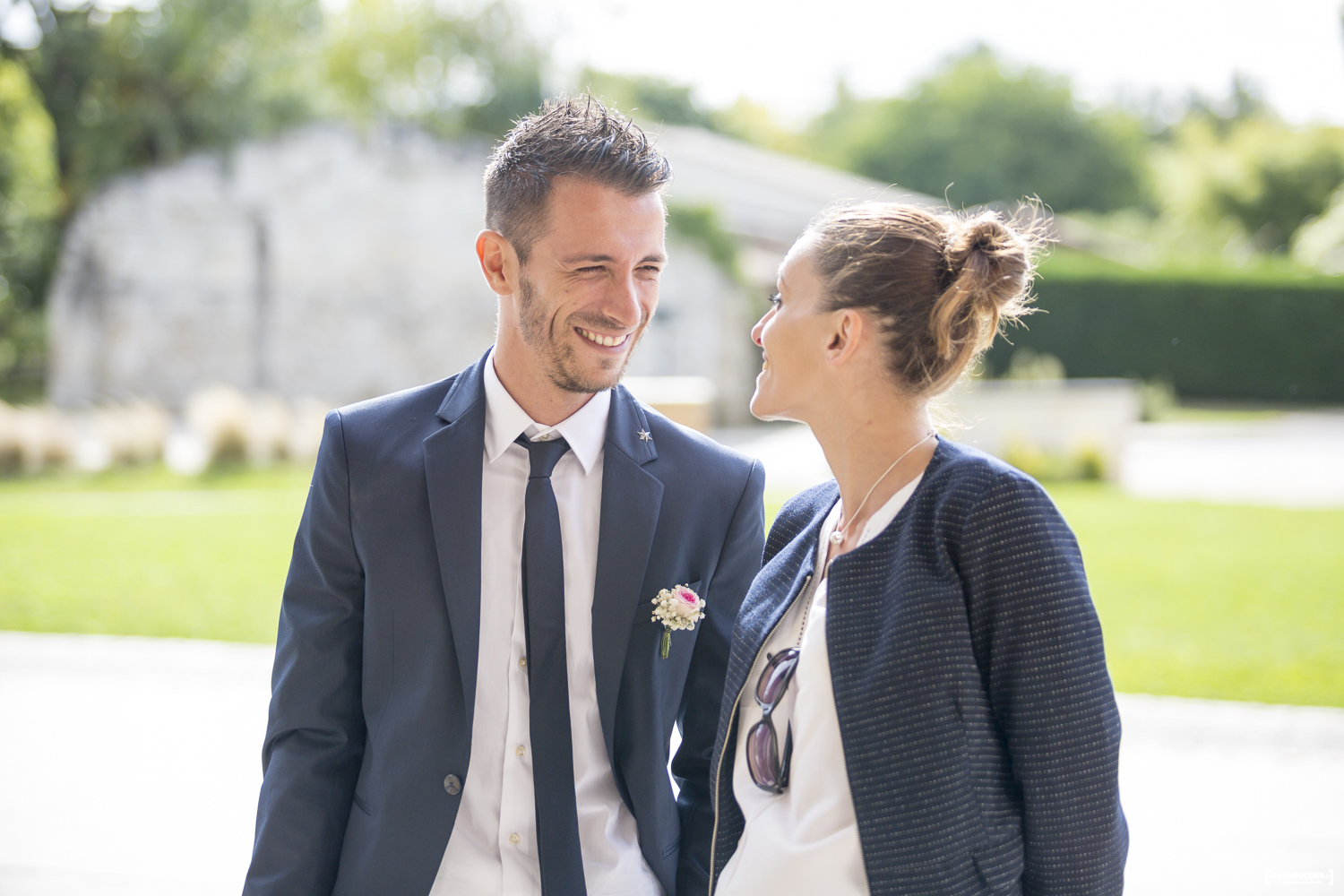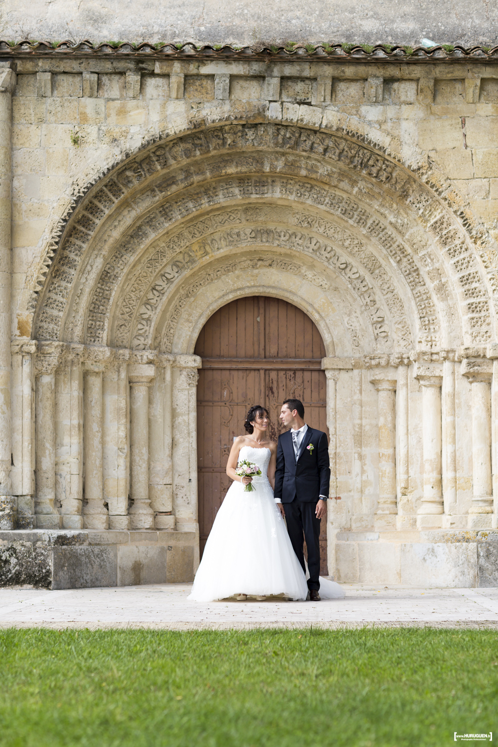 A la sortie de la mairie le soleil avait fait son grand retour. L’occasion de réaliser quelques jolies photos de couple en attendant le début de la cérémonie religieuse.