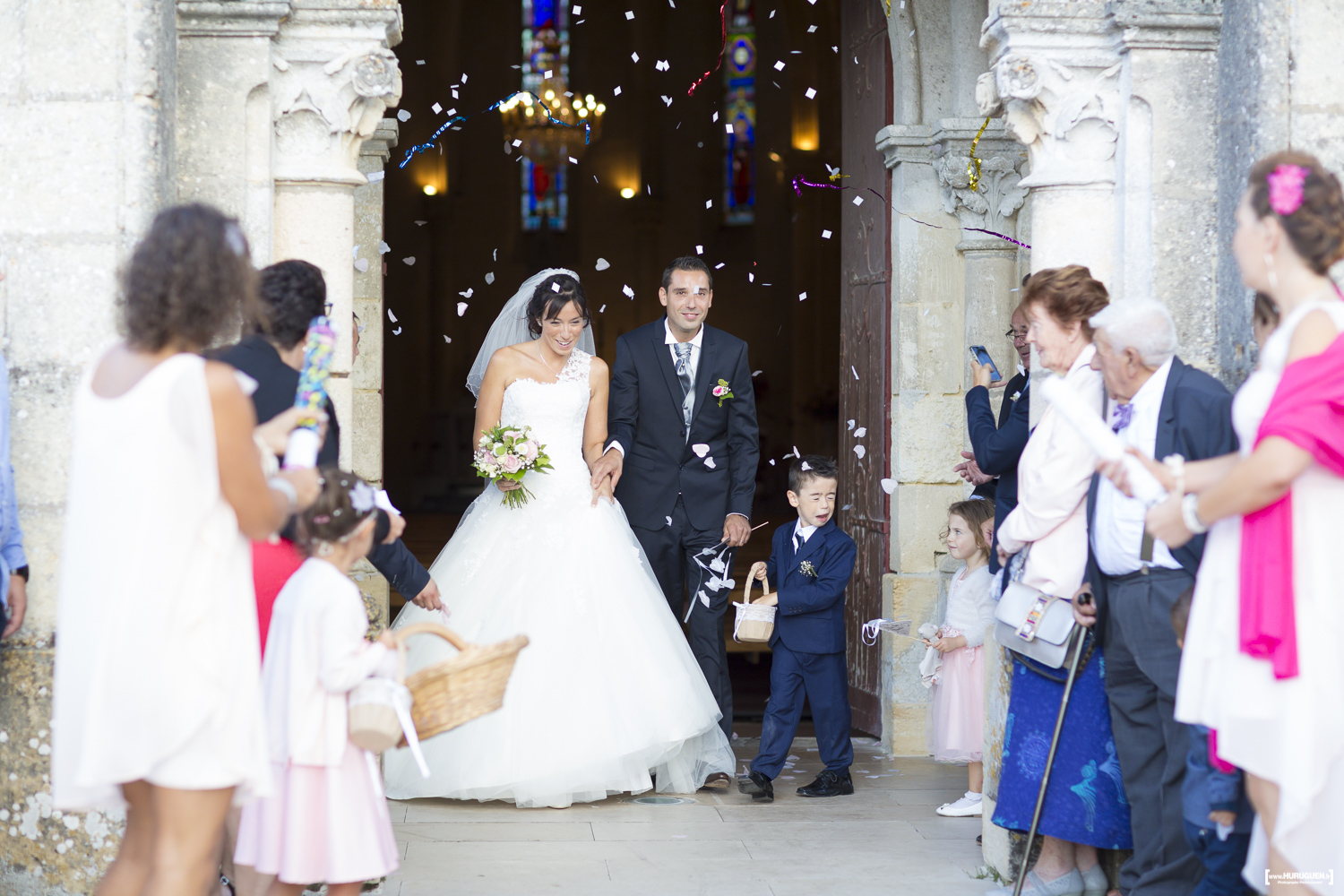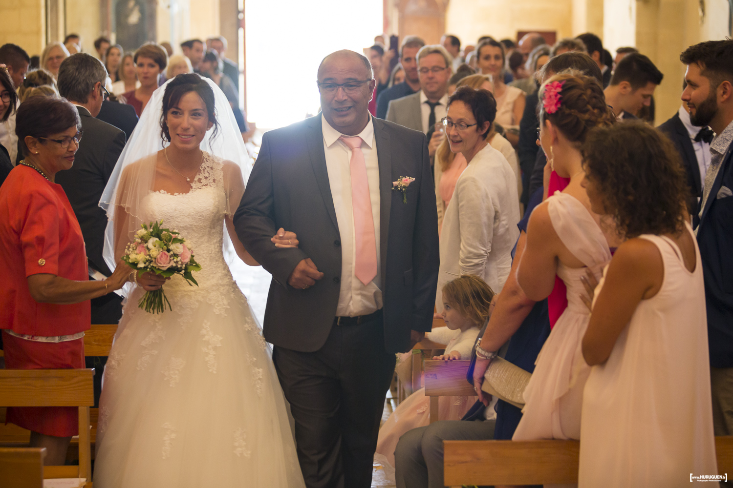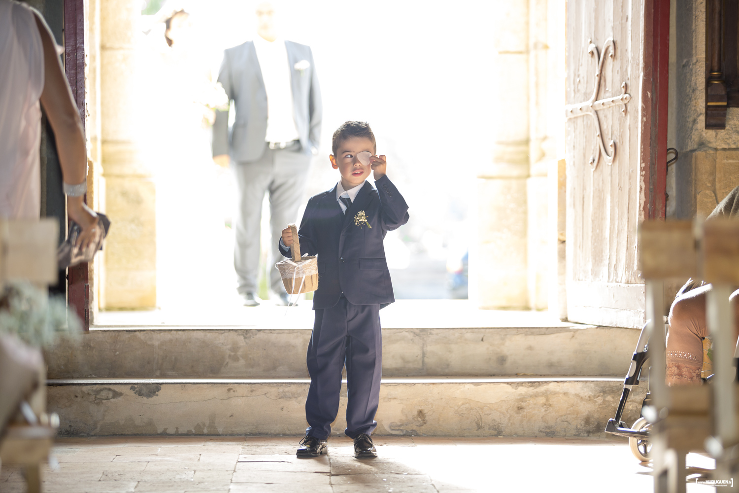 A la sortie de la mairie le soleil avait fait son grand retour. L’occasion de réaliser quelques jolies photos de couple en attendant le début de la cérémonie religieuse.