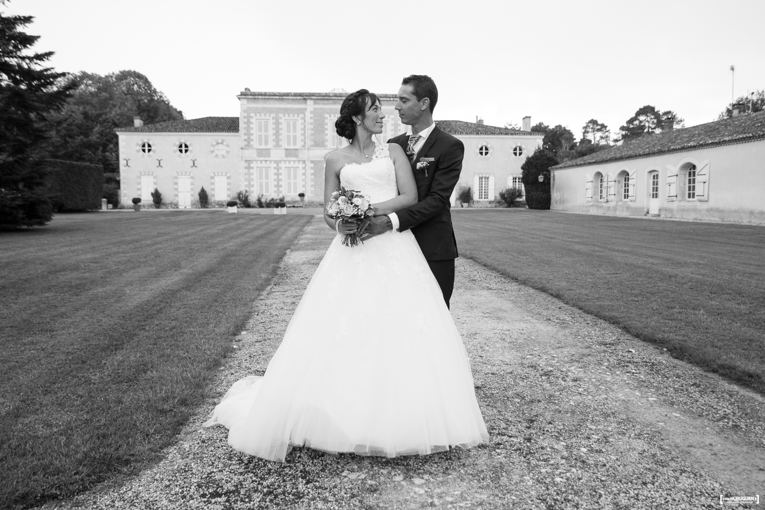 Tout le cortège a ensuite pris la direction du Château de Cujac à St-Aubin-de-Médoc. Pour profiter du vin d’honneur dans les jardins du domaine viticole et partager un excellent diner dans le chai de la propriété. La fête a battue son plein jusque tard dans la nuit !
