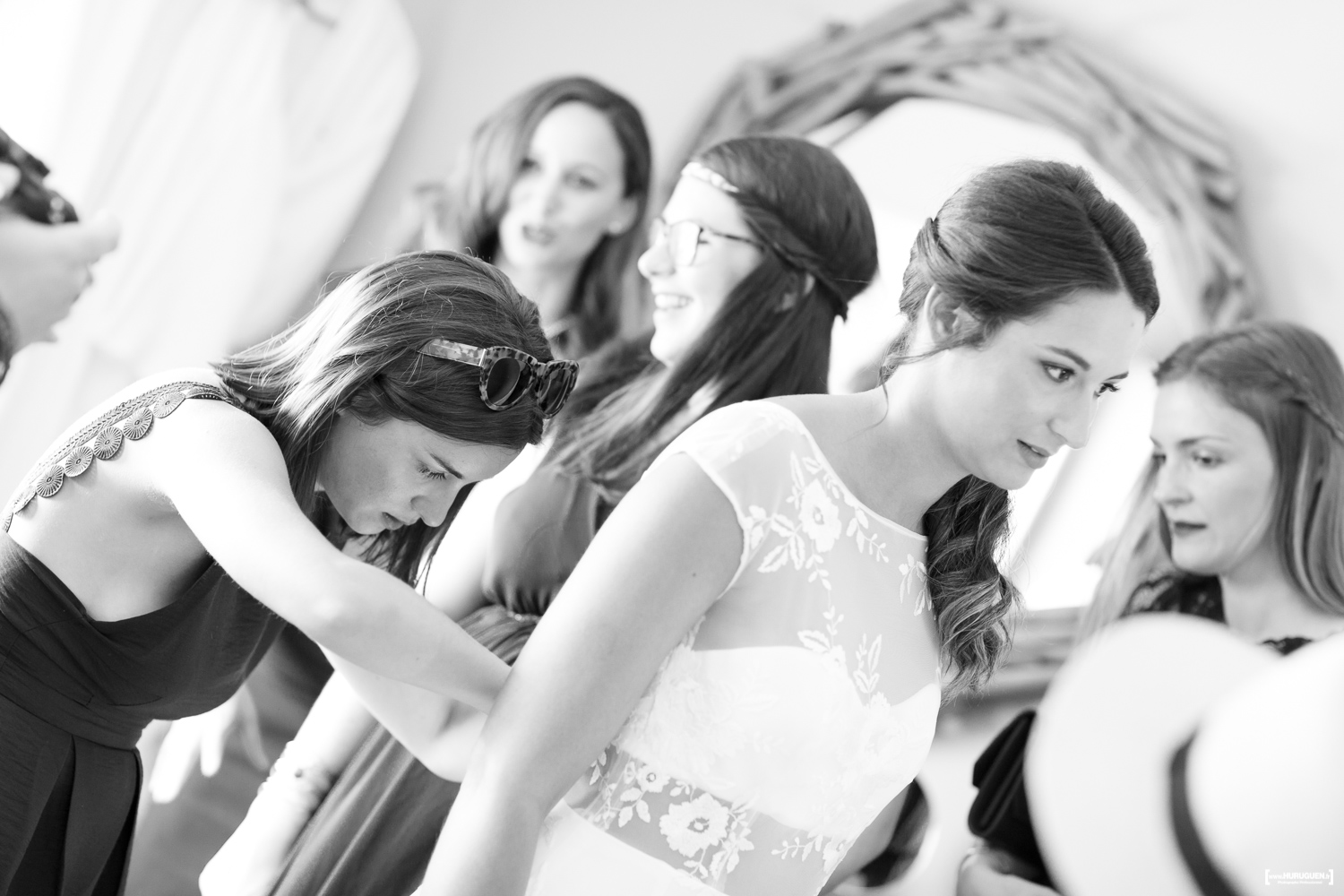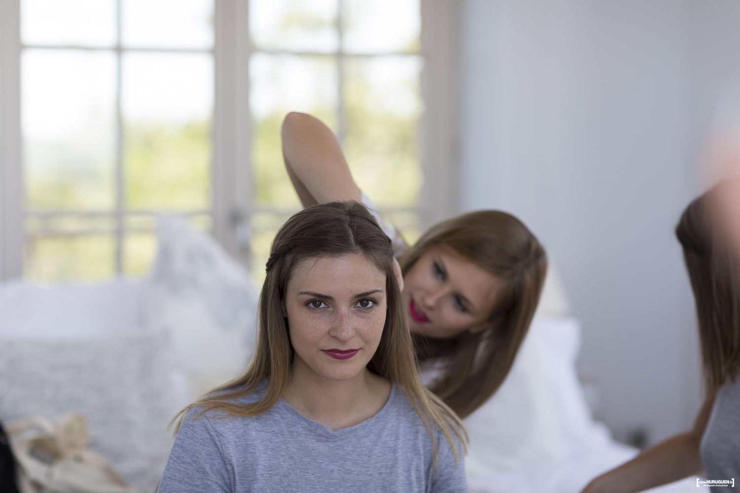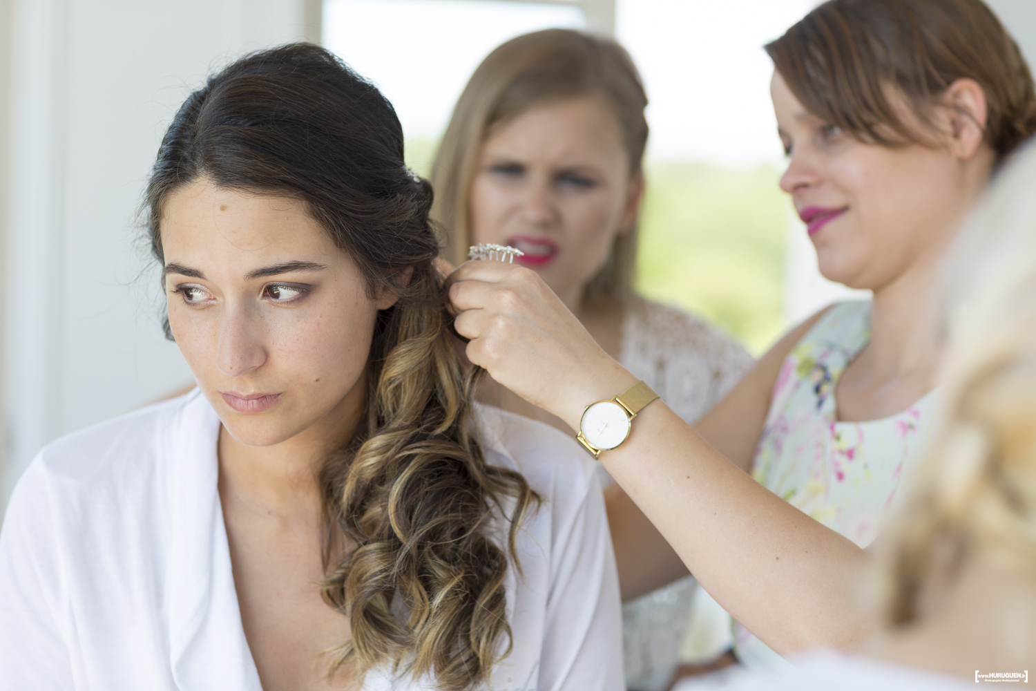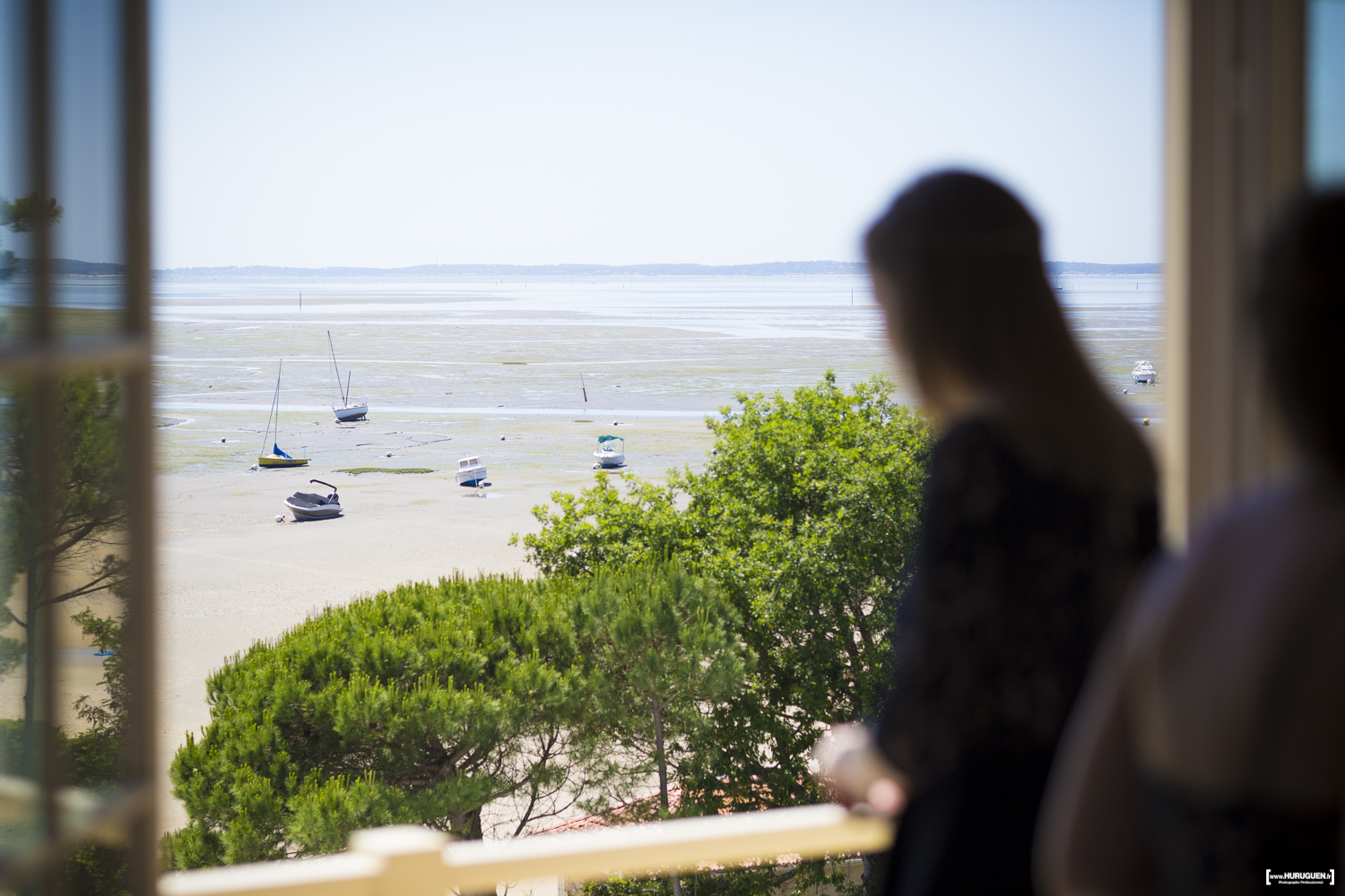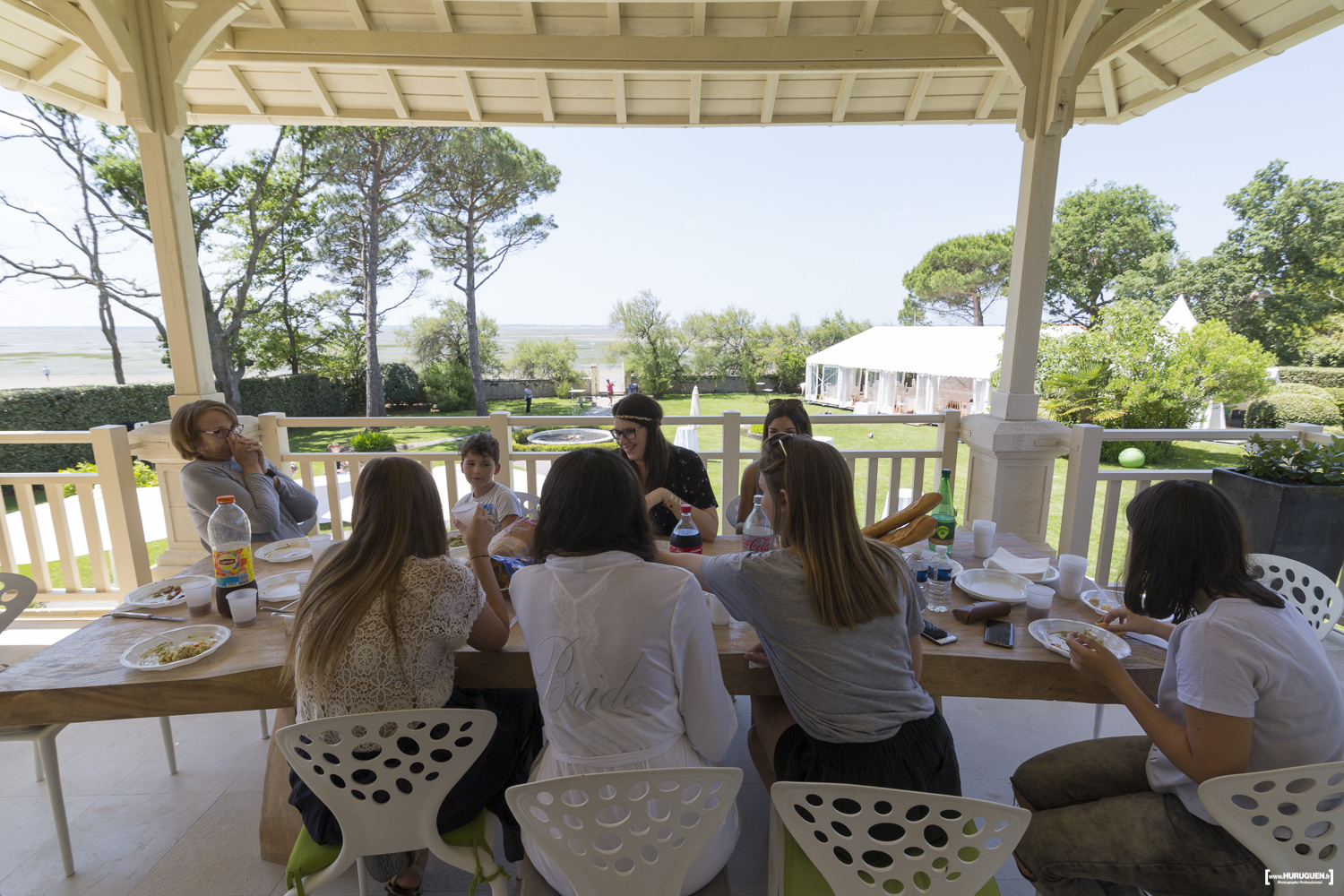Le ciel bleu et le bassin à perte de vue, voici le cadre des préparatifs de la ravissante future mariée entourée de ses demoiselles d’honneurs.