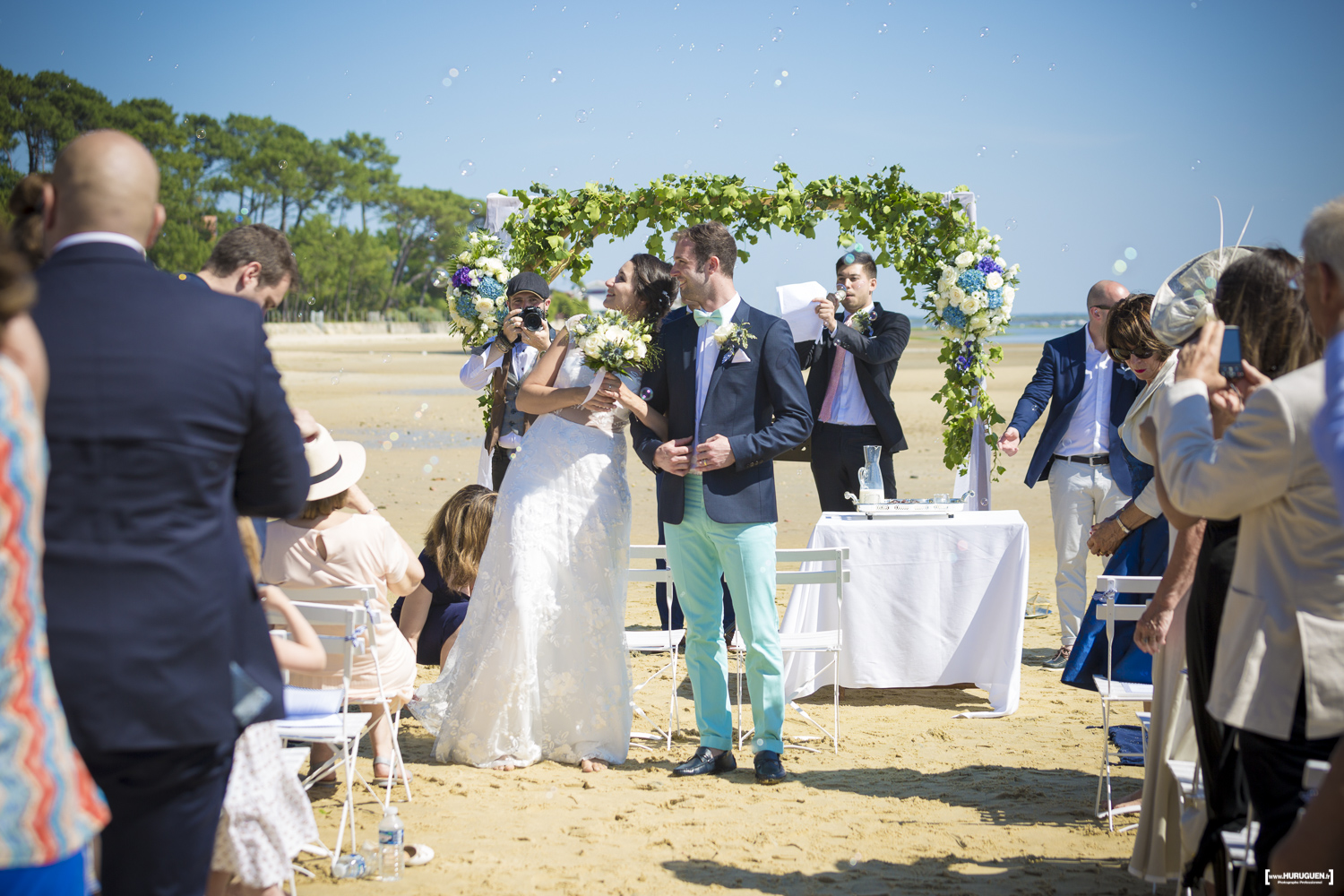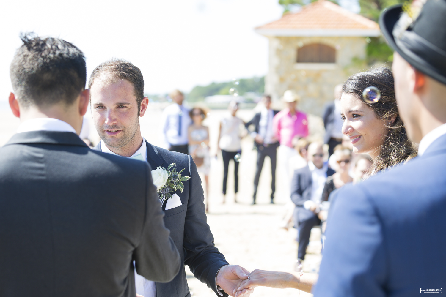 Une superbe cérémonie laïque a eu lieu directement sur la plage en face de la villa, au bord d’une arche joliment décorée, les pieds dans le sable découvert par la marée basse. Intime, romantique et vraiment inoubliable.