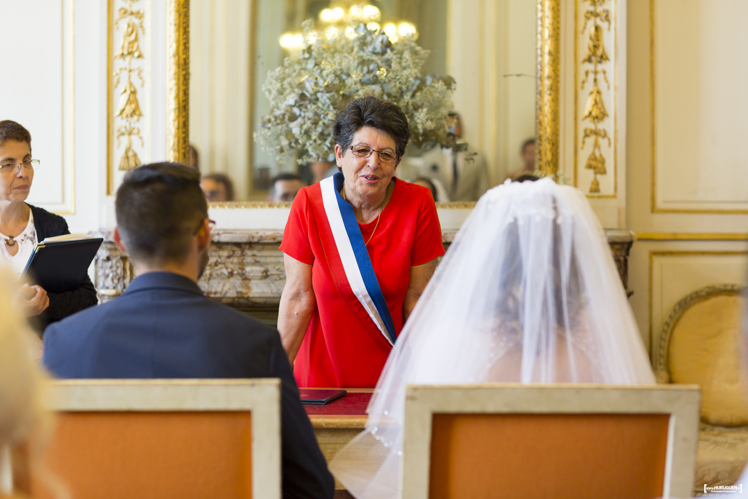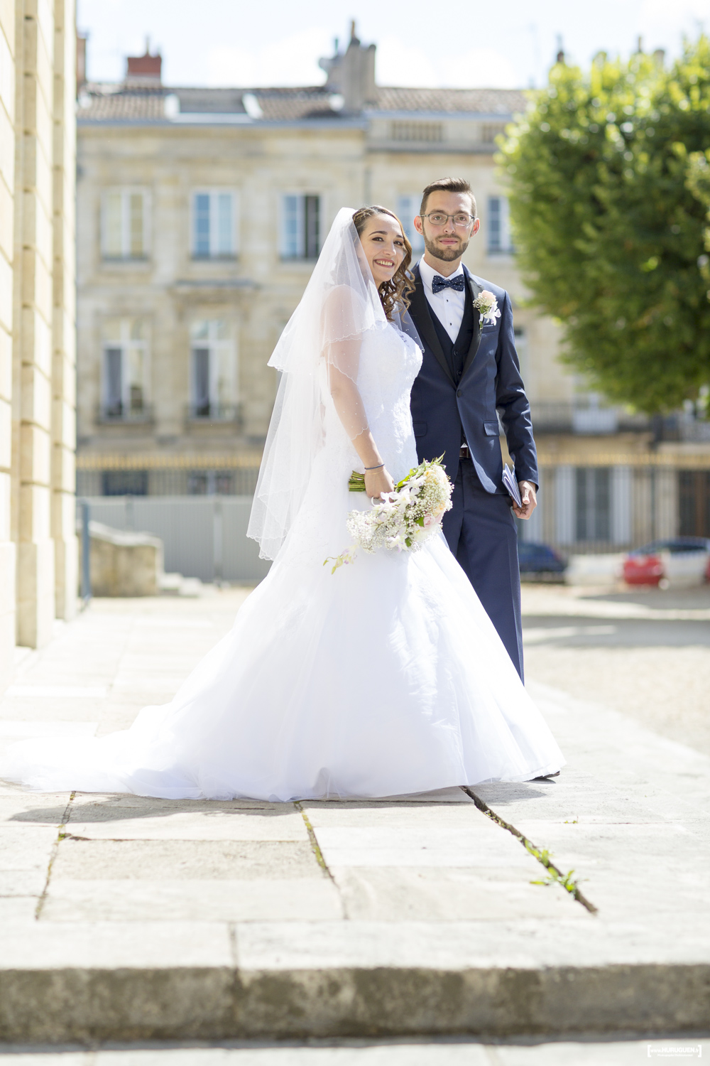 Les futurs mariés se sont retrouvés sur le parvis de la mairie de Bordeaux place Pey-Berland pour célébrer leur mariage civil. Un moment convivial entourés de leurs proches avant de prendre la direction du Château Courtade-Dubuc sur la rive droite de Bordeaux.