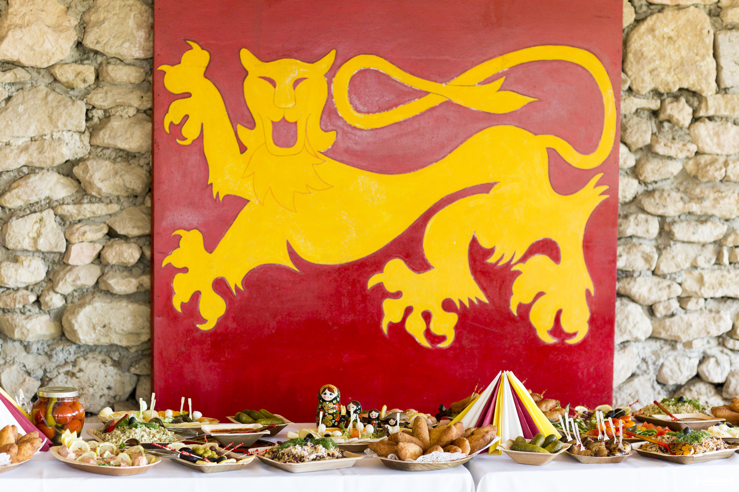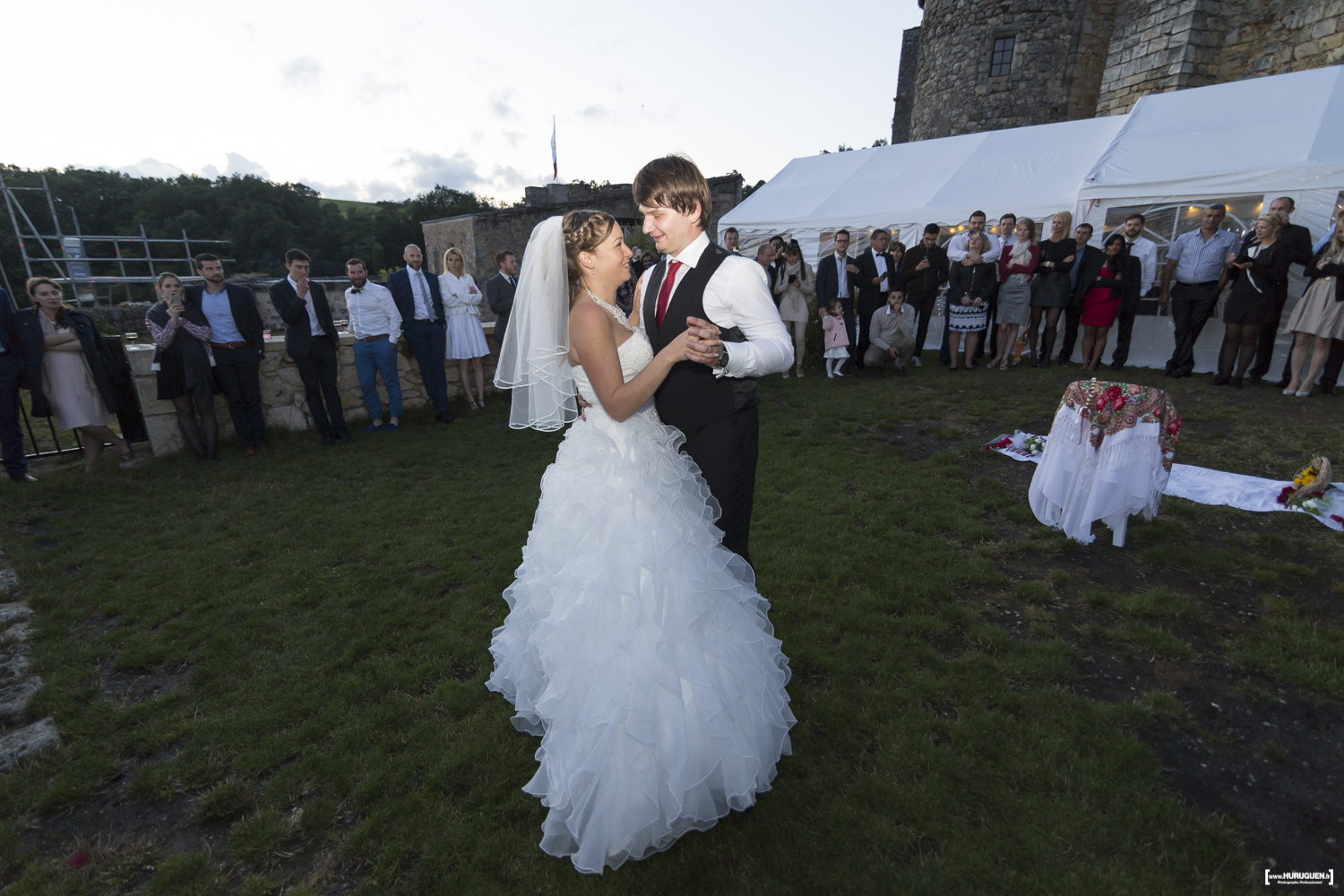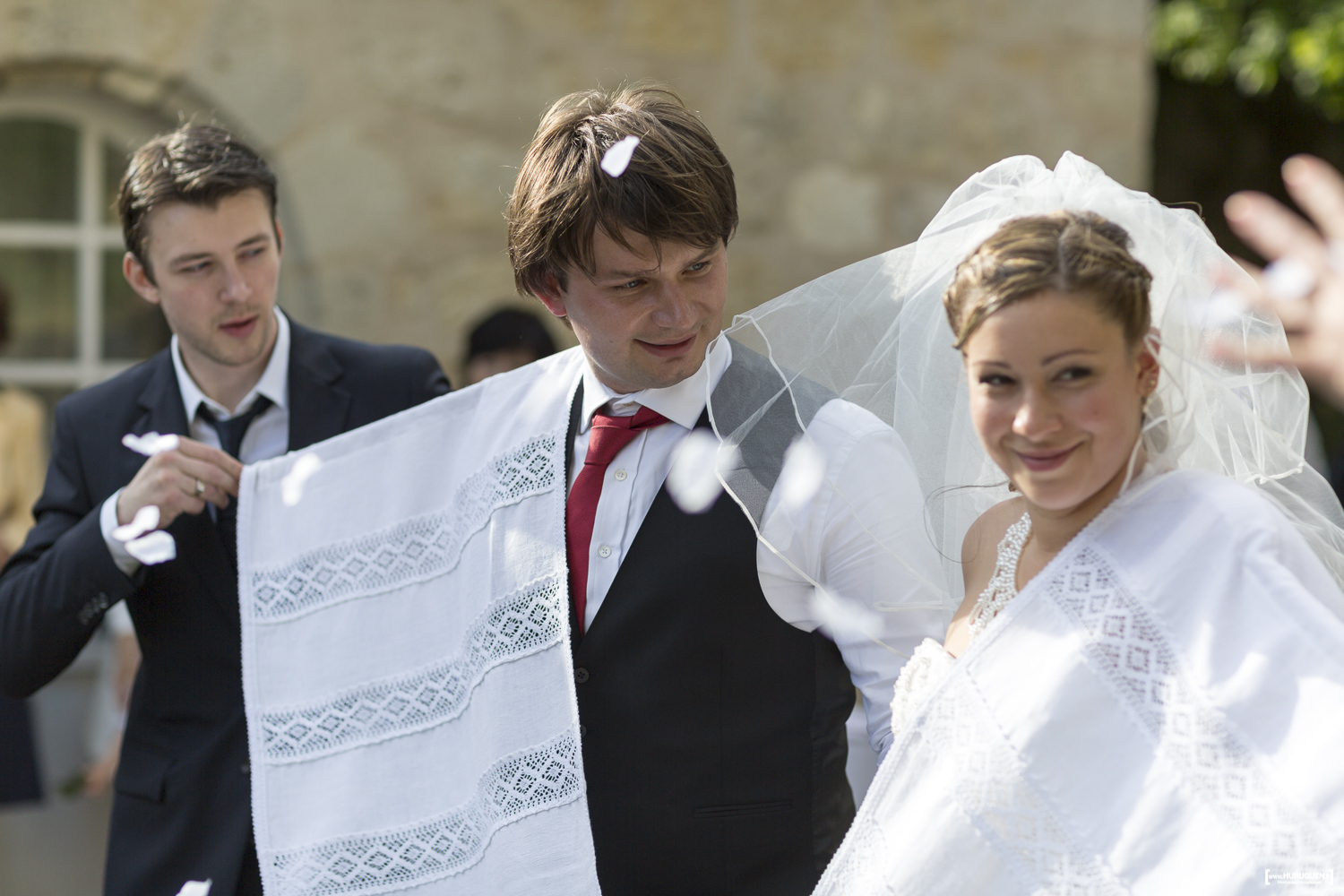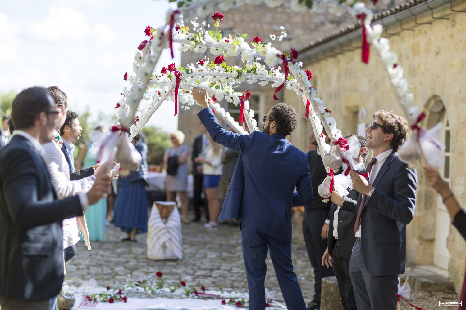 Les mariés ont été accueillis par une cérémonie traditionnelle colorée et intime à leur arrivée au Château !