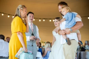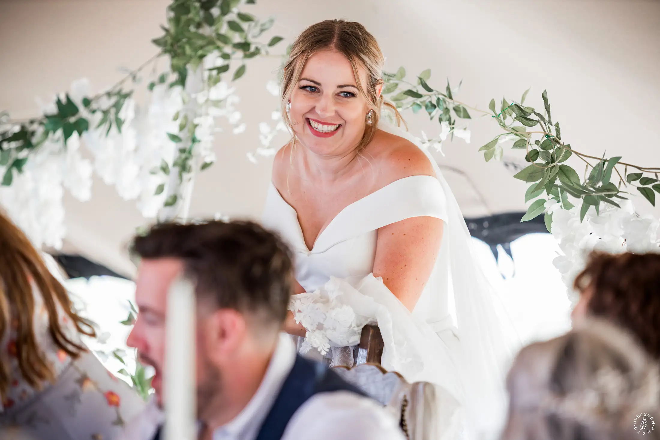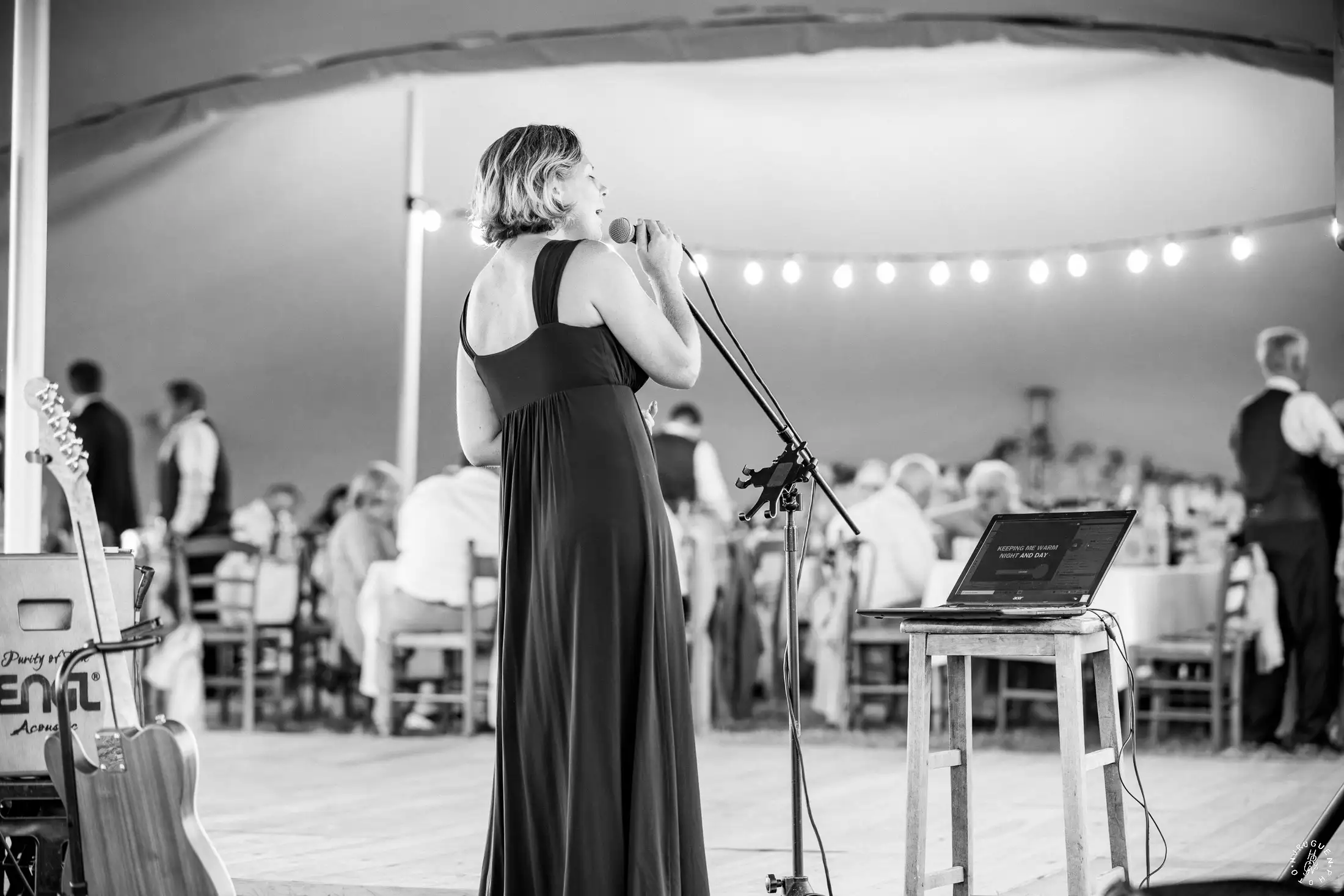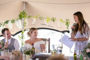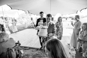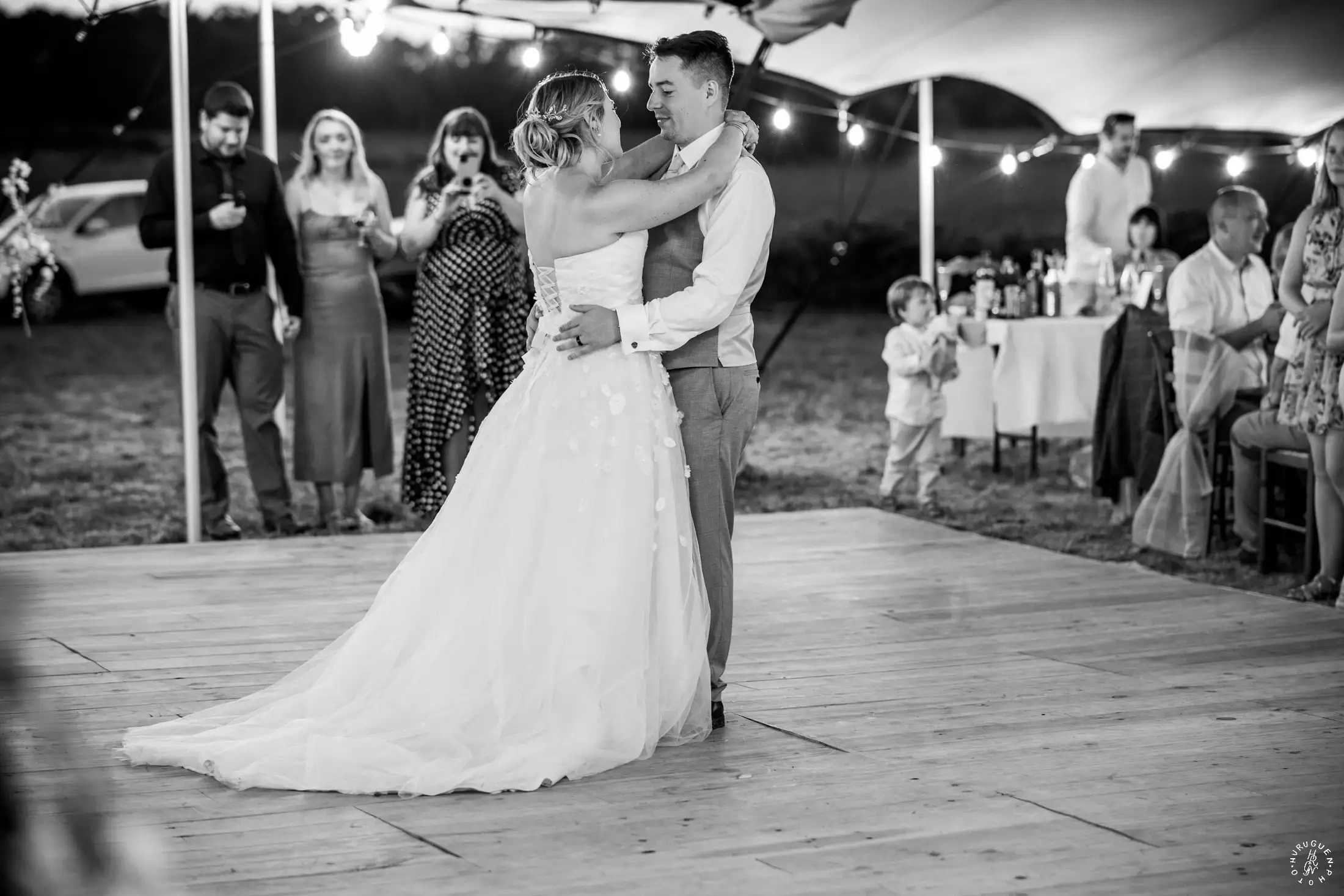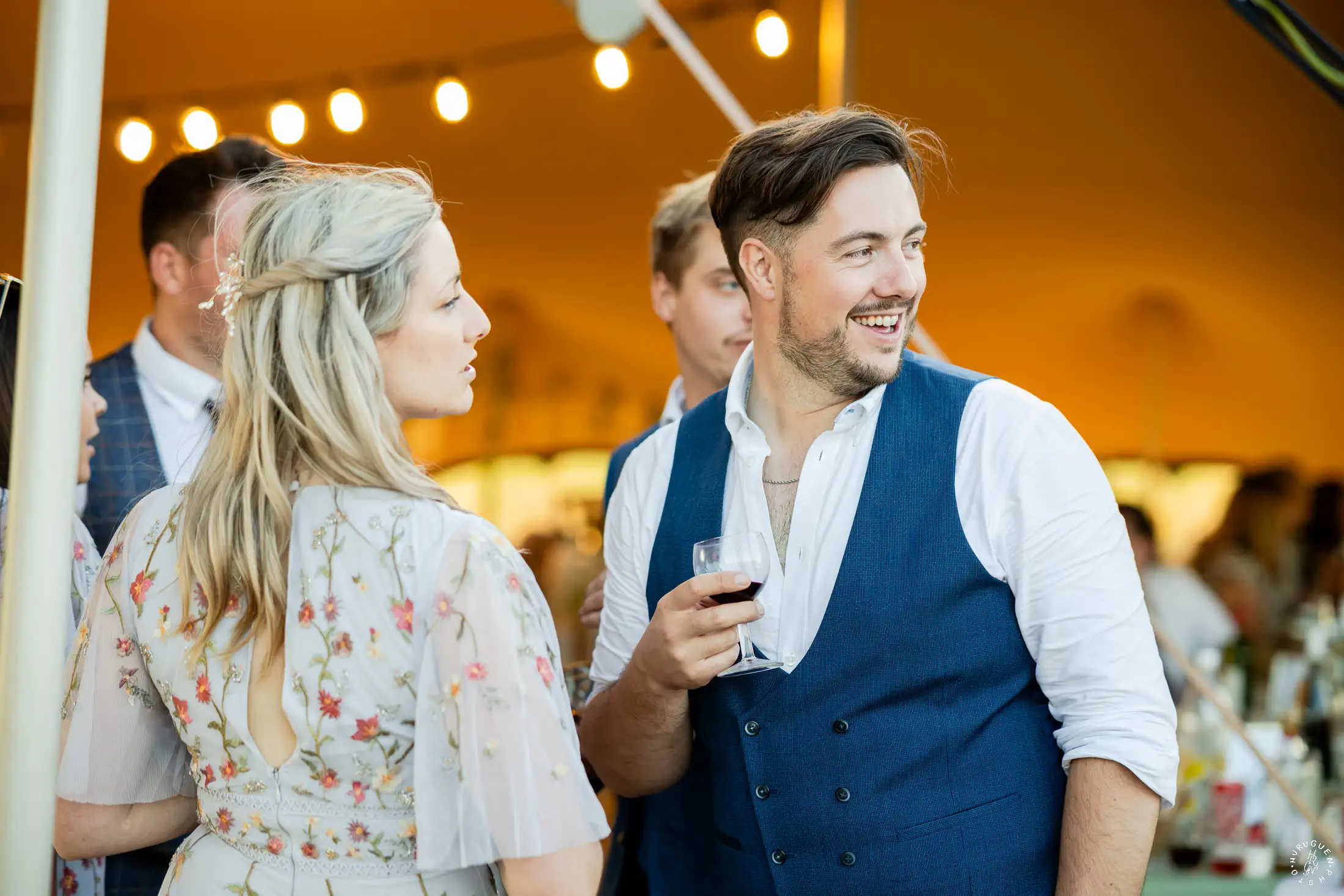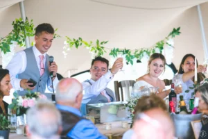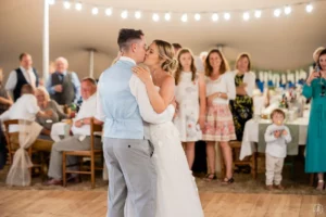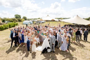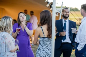 La soirée s’est poursuivie sous une magnifique tente stretch (nomade), illuminée par des guirlandes guinguettes. Le point d’orgue de la réception a sans aucun doute été l’énergie du groupe de rock live. Guitares électriques et rythmiques entraînantes ont transformé le dîner en un véritable concert privé, où les mariés n’ont pas hésité à trinquer au goulot pour célébrer leur bonheur.