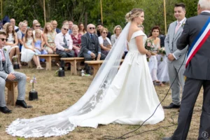 Le décor était volontairement minimaliste pour laisser place à l’émotion. Les invités, installés sur des bancs en bois rustiques, ont assisté à une cérémonie touchante, ponctuée de rires et de larmes de joie. C’est ce genre de cadre, à la fois intime et sauvage, qui permet de capturer les clichés les plus naturels.