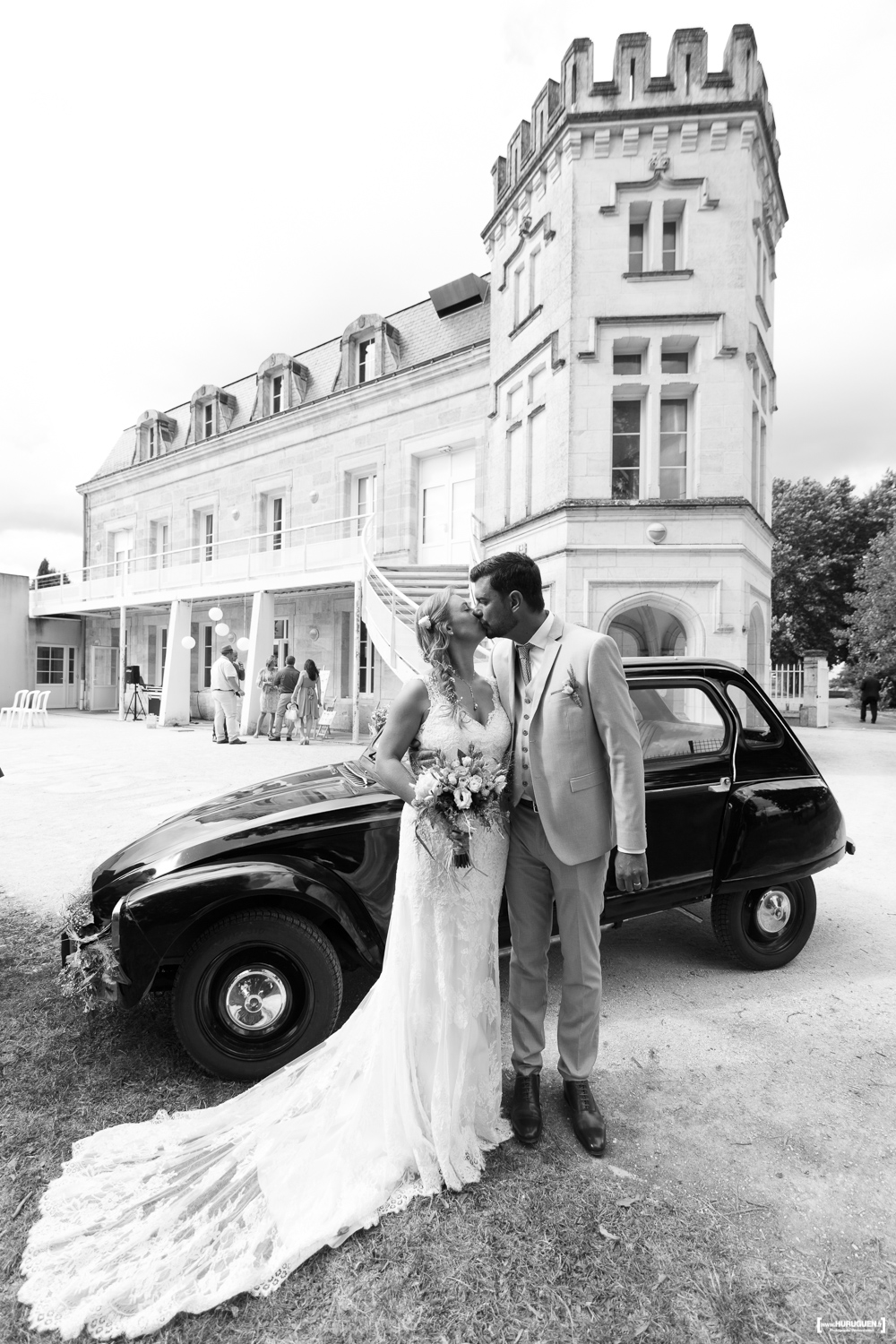L&F sont adorables, ils forment un couple très charmant. C’est dans une jolie Citroën Dyane noire que la future mariée a fait son arrivée devant la petite salle de la Mairie de Gardegan-et-Tourtirac où les invités et les familles s’étaient rassemblés. Pour le bonheur de Mr le Maire qui n’a pas l’occasion de célébrer des mariages très souvent !