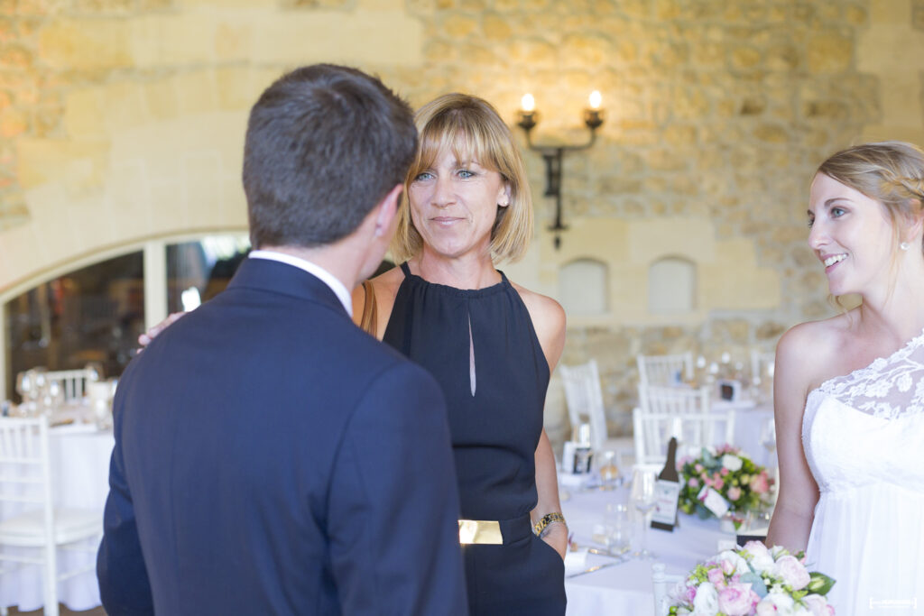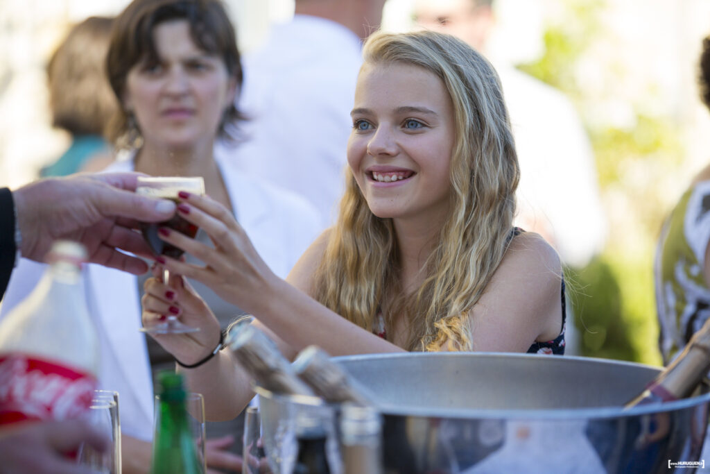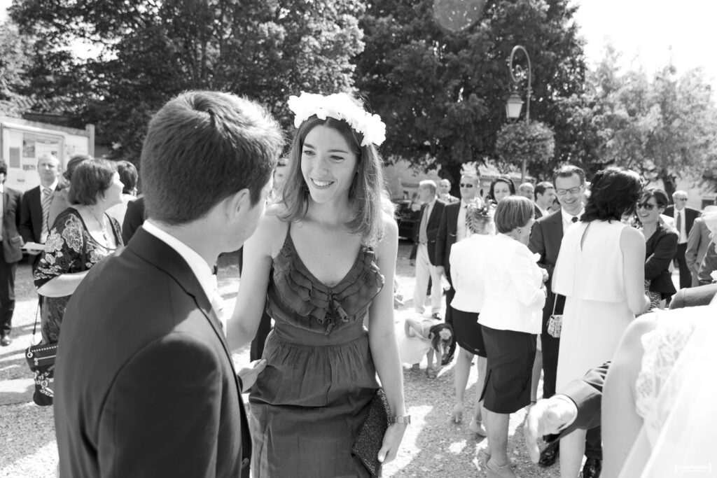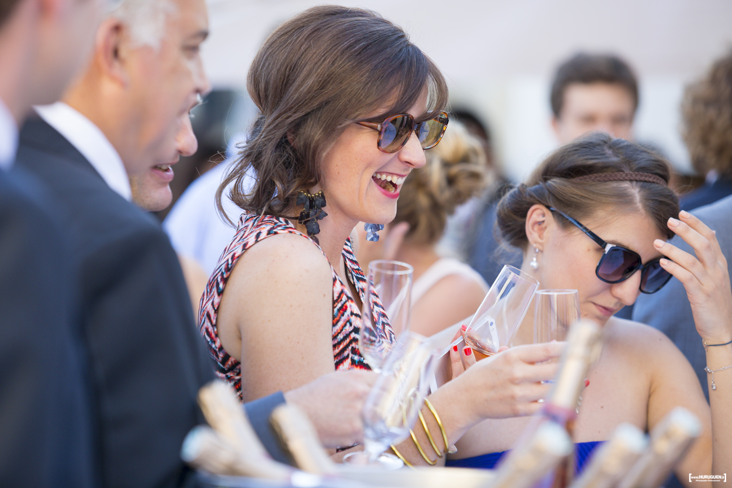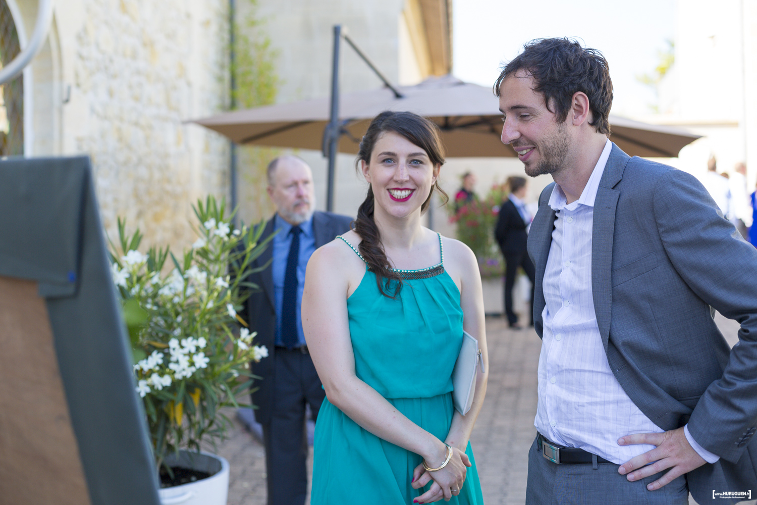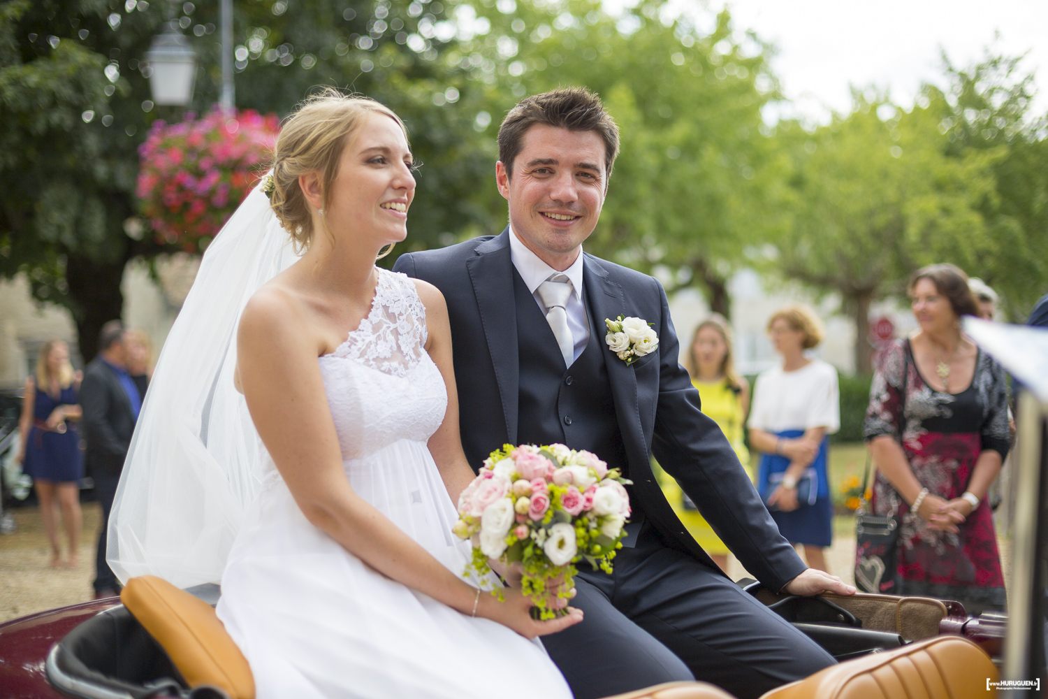 Une magnifique voiture a conduit la jeune mariée sur la place de l’église avant d’emmener le couple de jeunes mariés jusqu’au Château Lafitte à Yvrac pour un cocktail au soleil dans les jardins de la propriété au son d’un orchestre de music jazz.