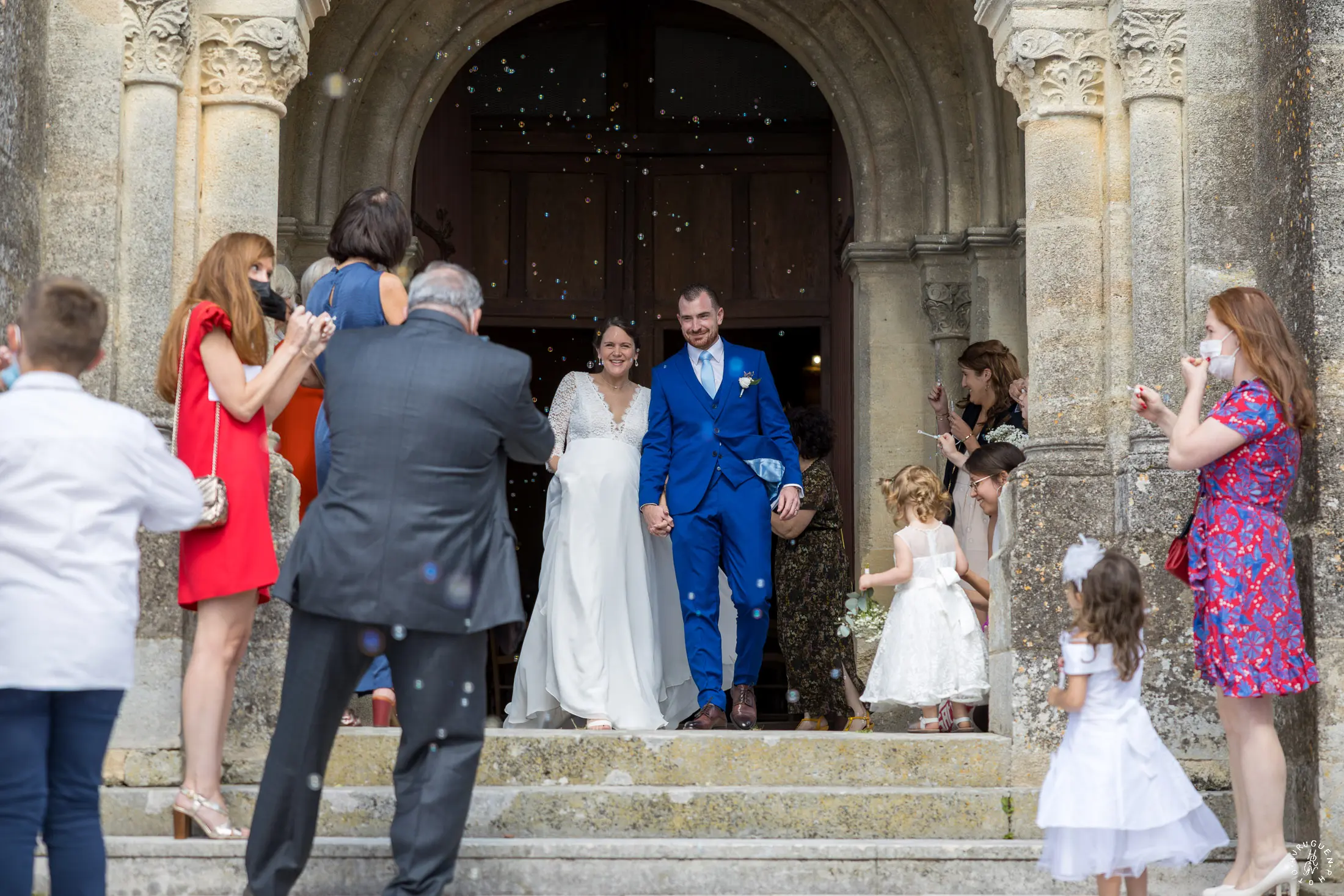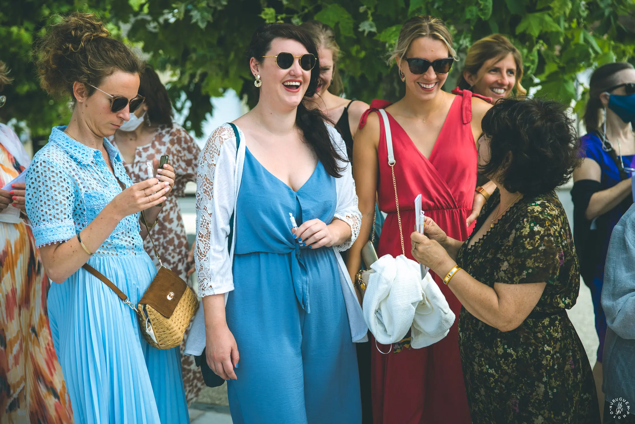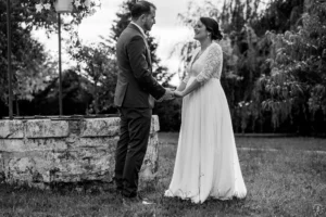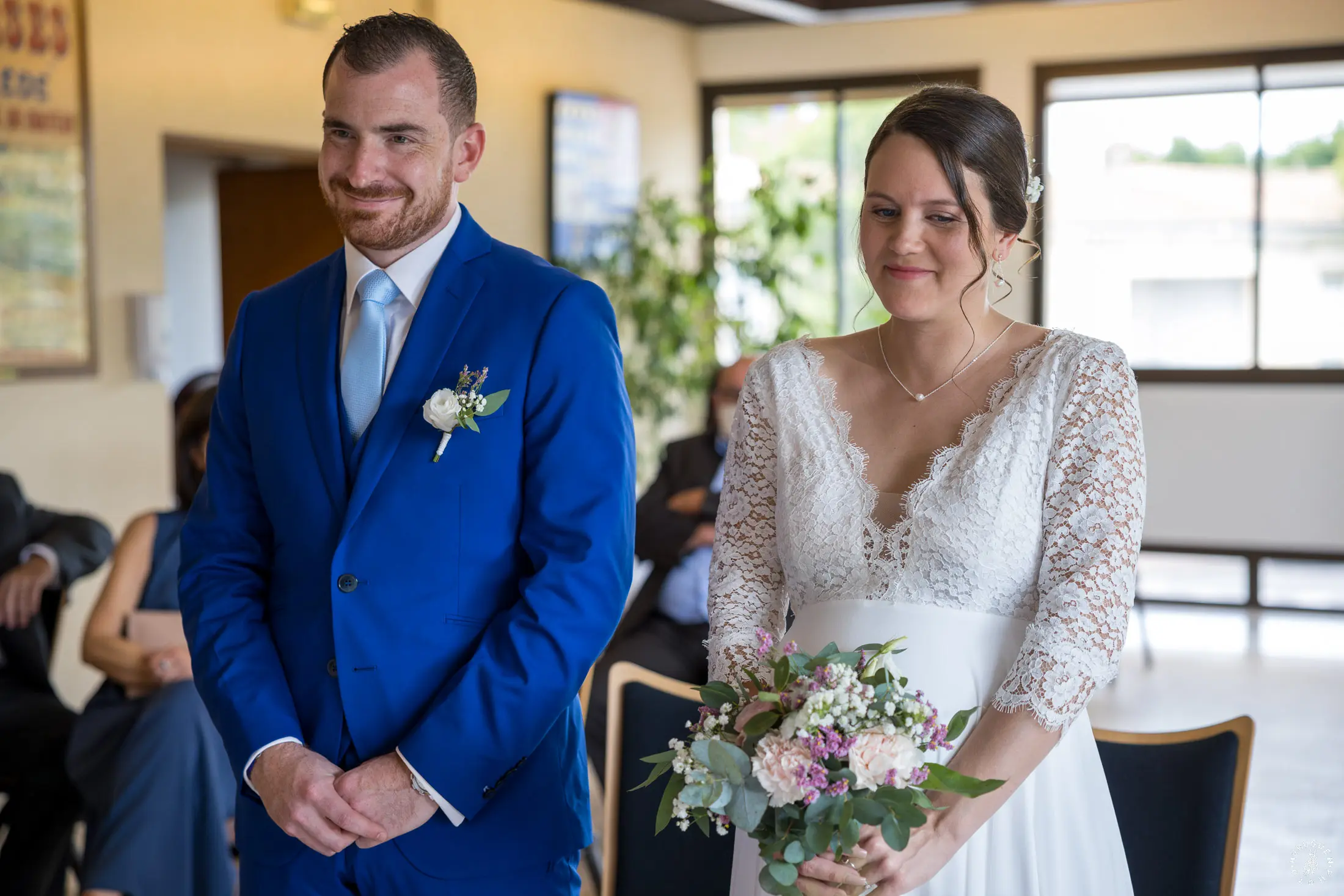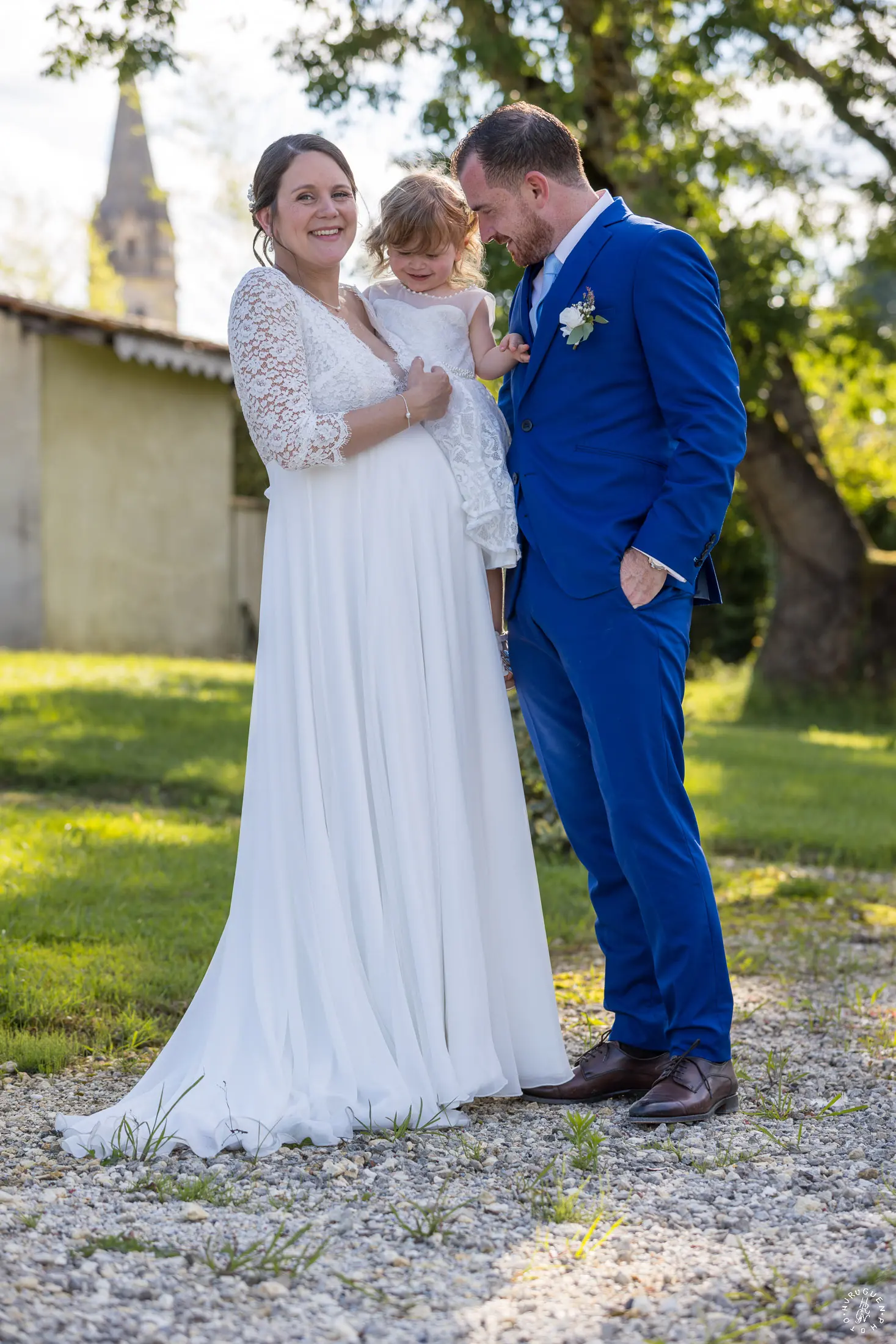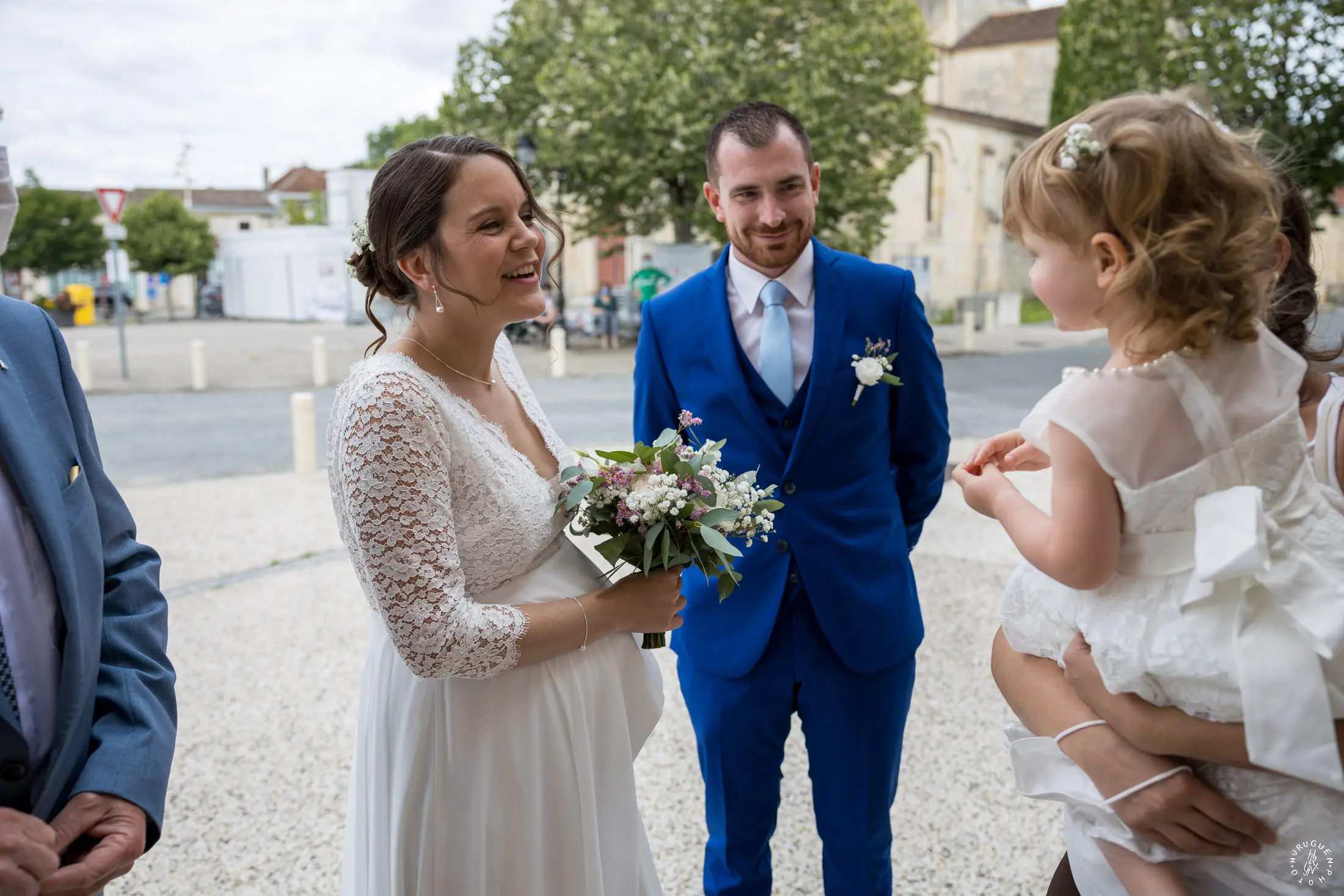 En 2021, ce mariage a débuté par une cérémonie civile à la mairie de La Brède, dans un contexte particulier. Les proches, masqués, étaient présents pour entourer les mariés avec beaucoup de bienveillance. Malgré les contraintes sanitaires de l’époque, les regards, les gestes et les sourires discrets traduisaient une émotion forte et sincère.