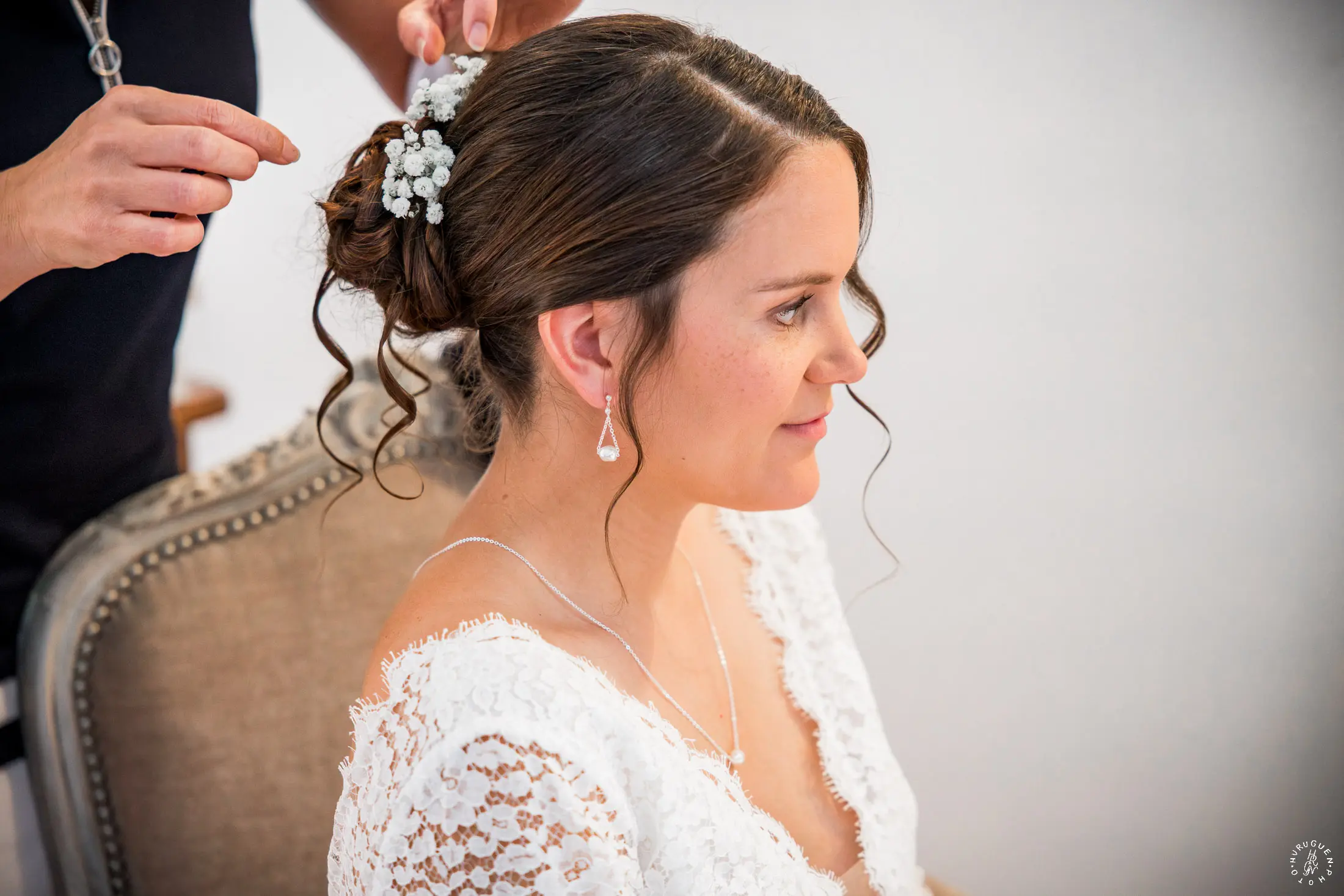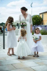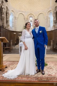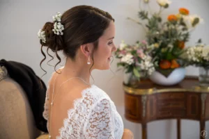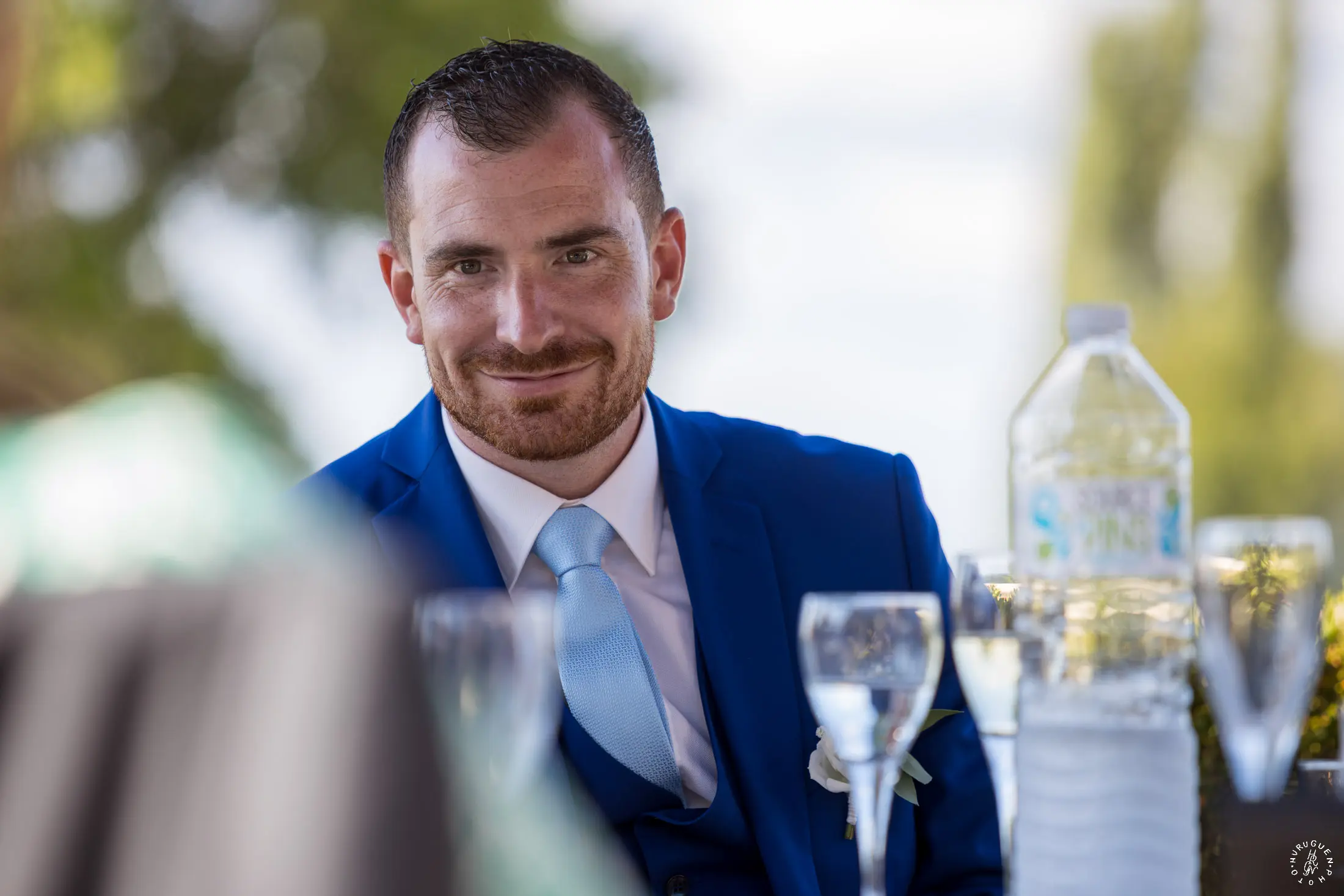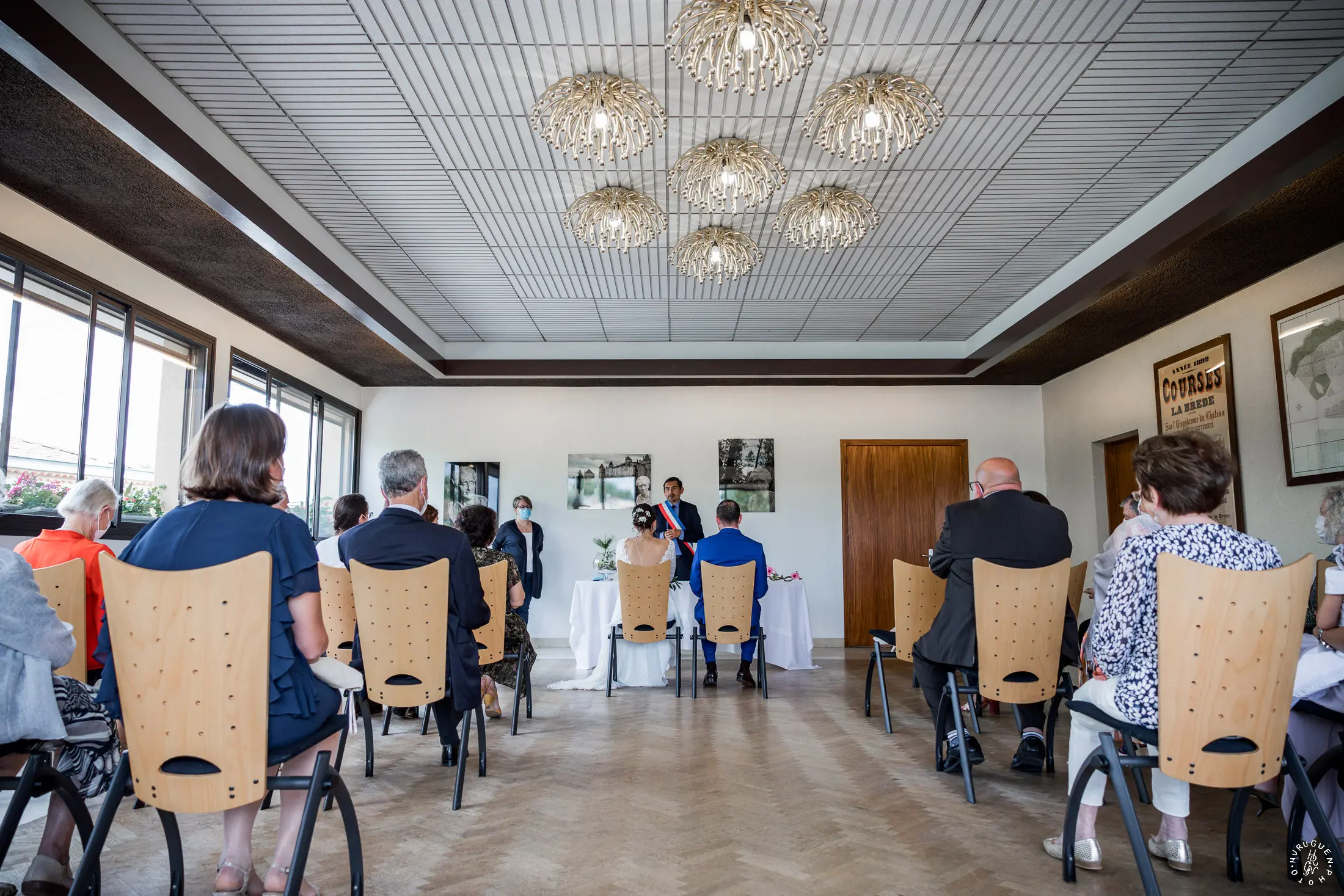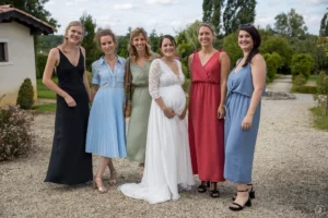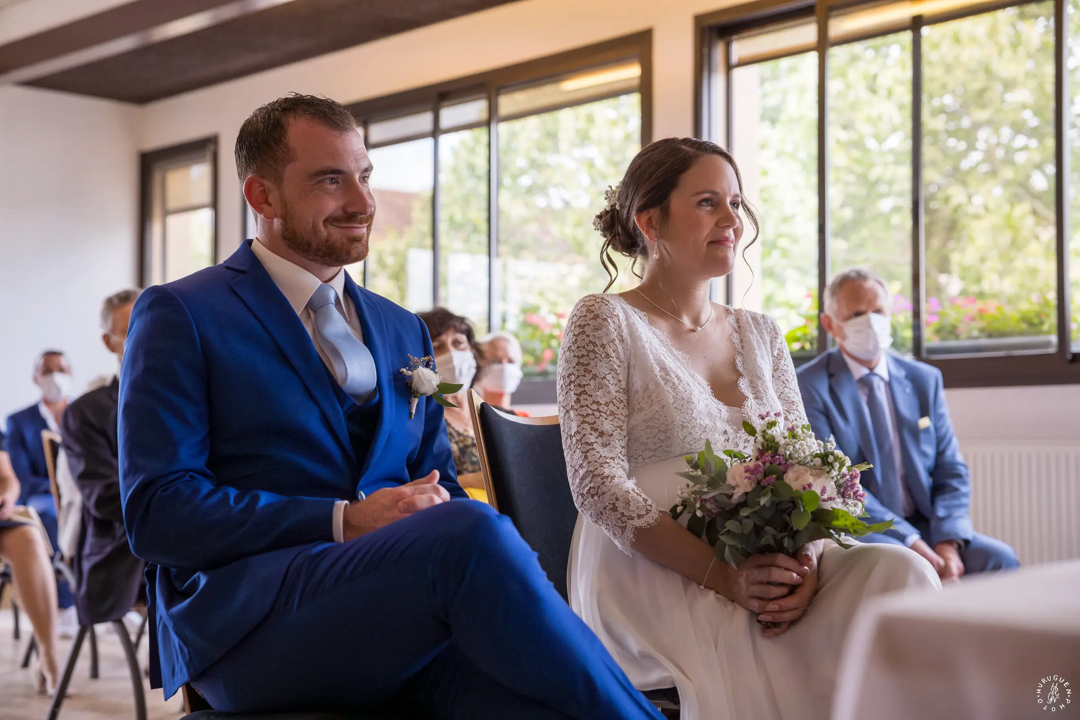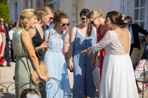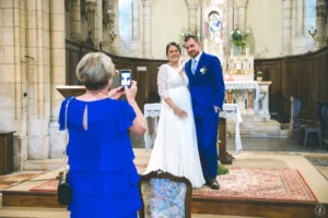 En 2021, ce mariage a débuté par une cérémonie civile à la mairie de La Brède, dans un contexte particulier. Les proches, masqués, étaient présents pour entourer les mariés avec beaucoup de bienveillance. Malgré les contraintes sanitaires de l’époque, les regards, les gestes et les sourires discrets traduisaient une émotion forte et sincère.