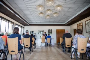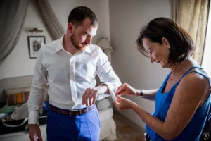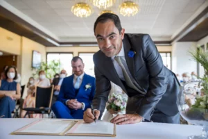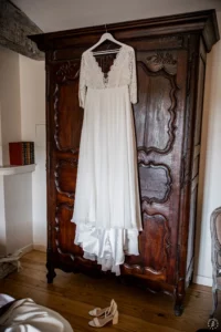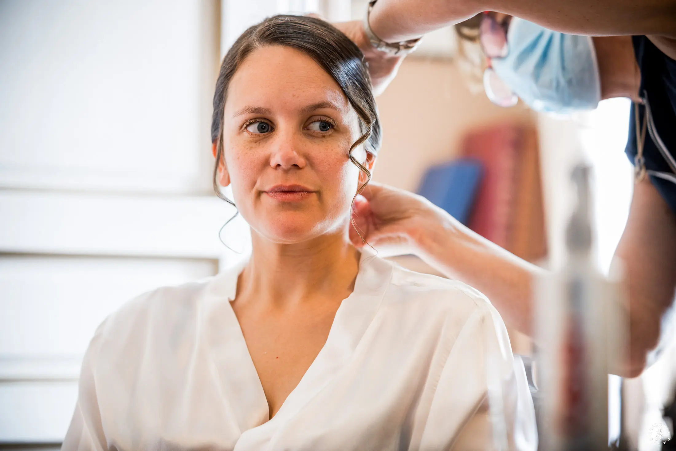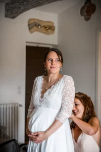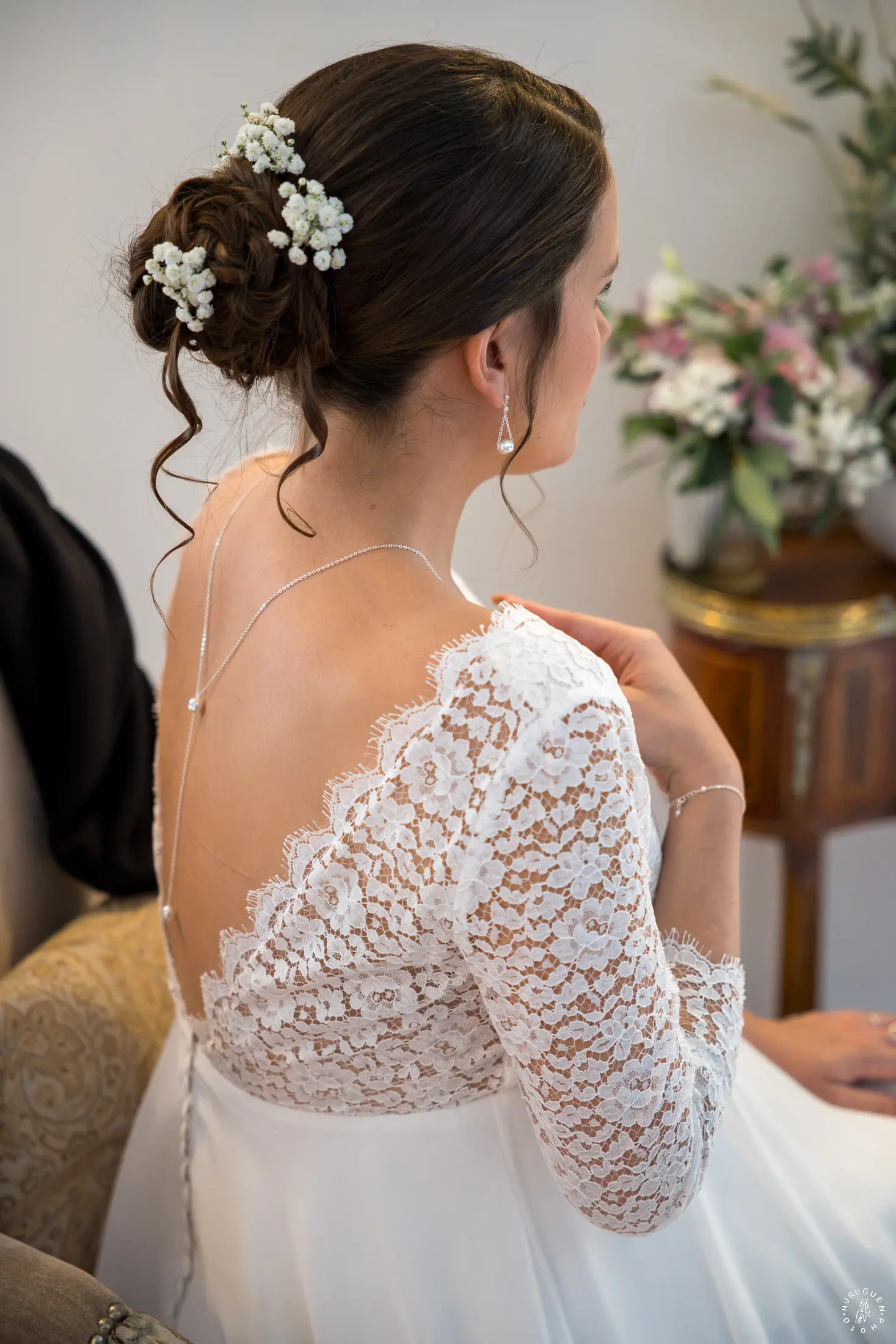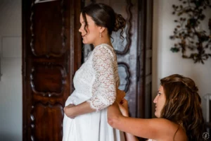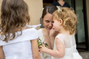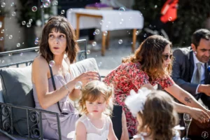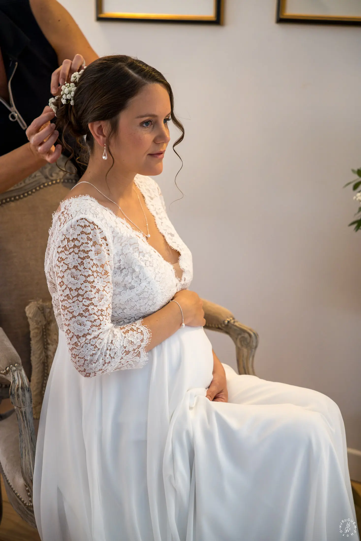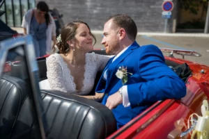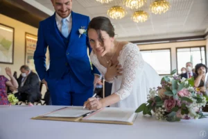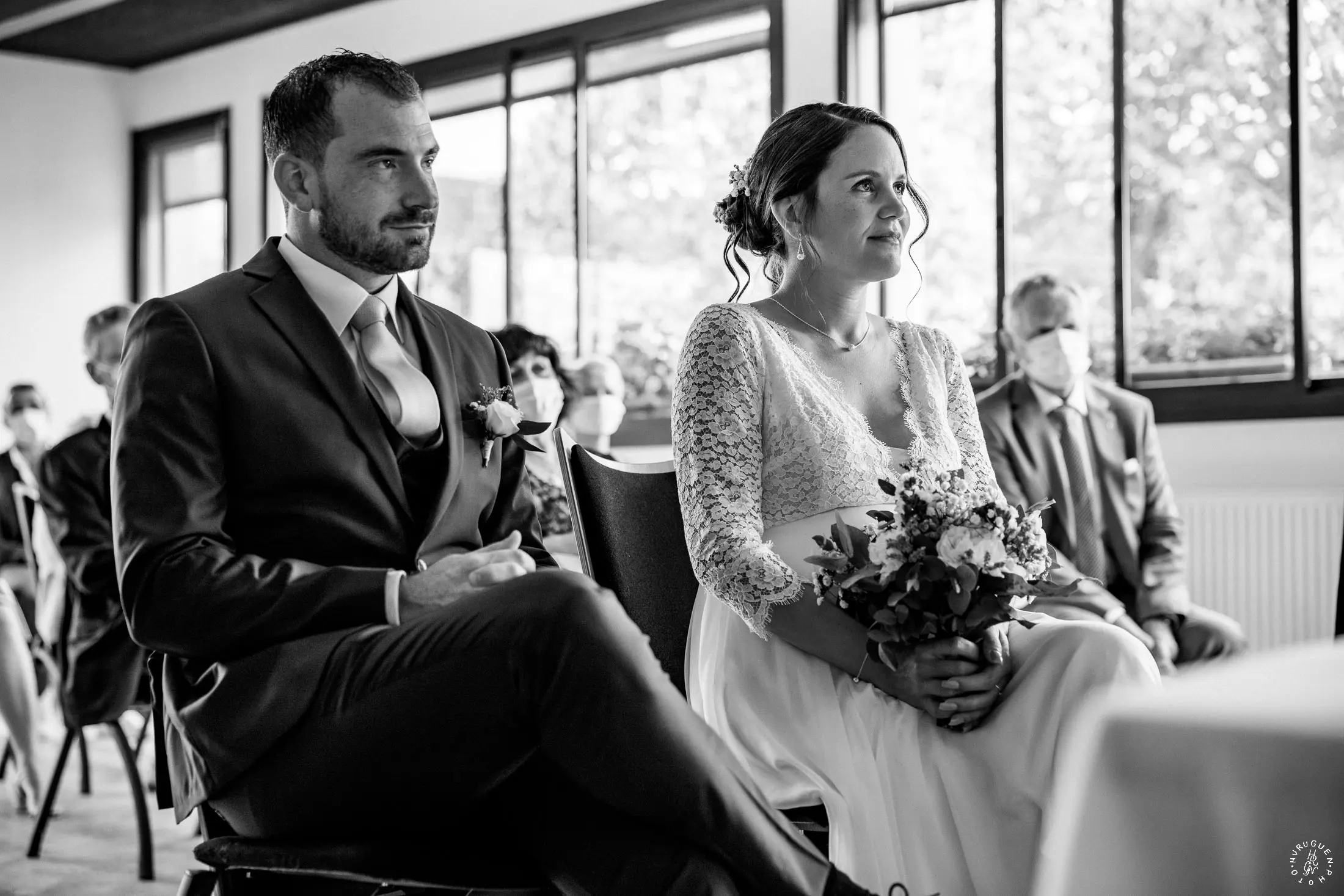 En 2021, ce mariage a débuté par une cérémonie civile à la mairie de La Brède, dans un contexte particulier. Les proches, masqués, étaient présents pour entourer les mariés avec beaucoup de bienveillance. Malgré les contraintes sanitaires de l’époque, les regards, les gestes et les sourires discrets traduisaient une émotion forte et sincère.