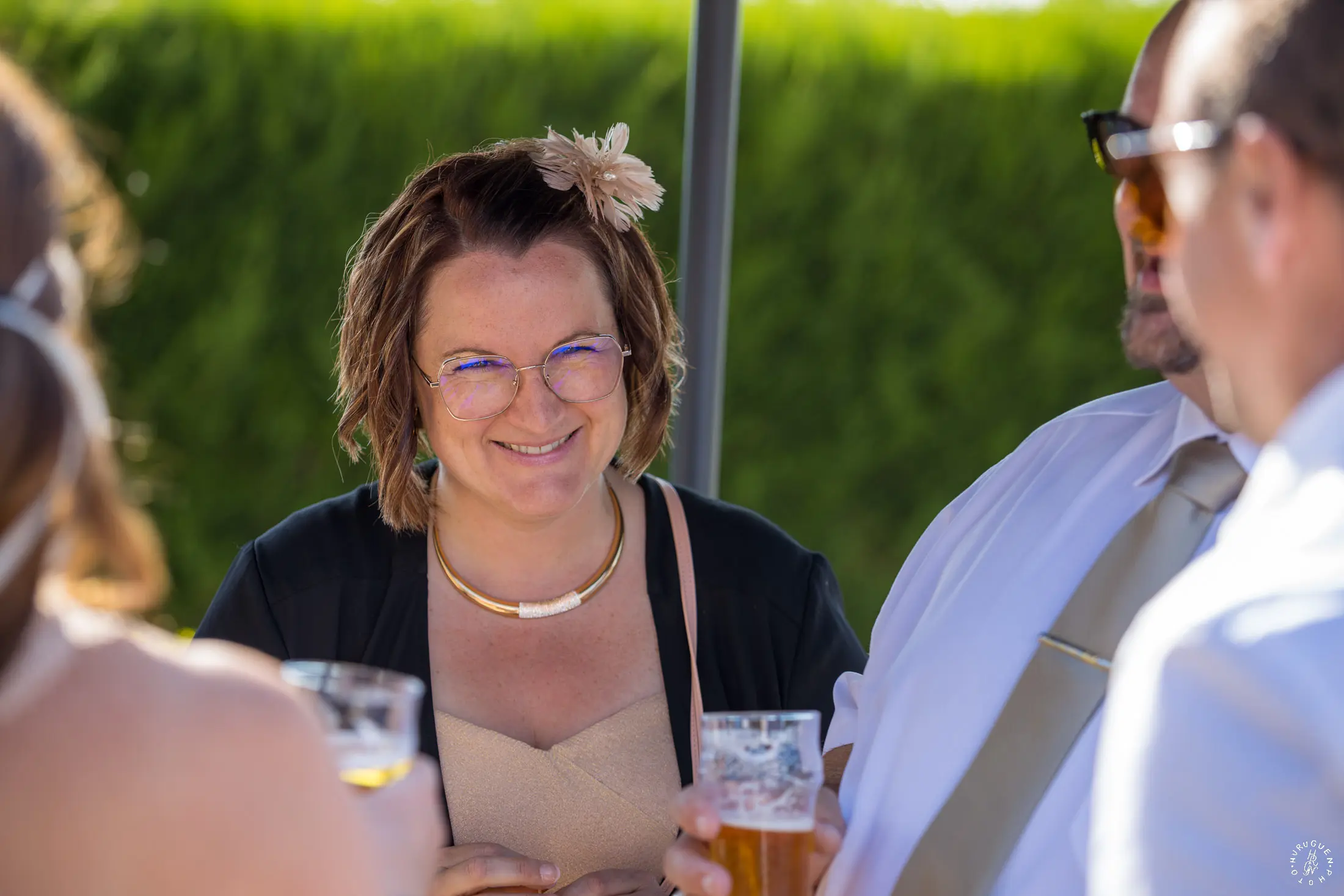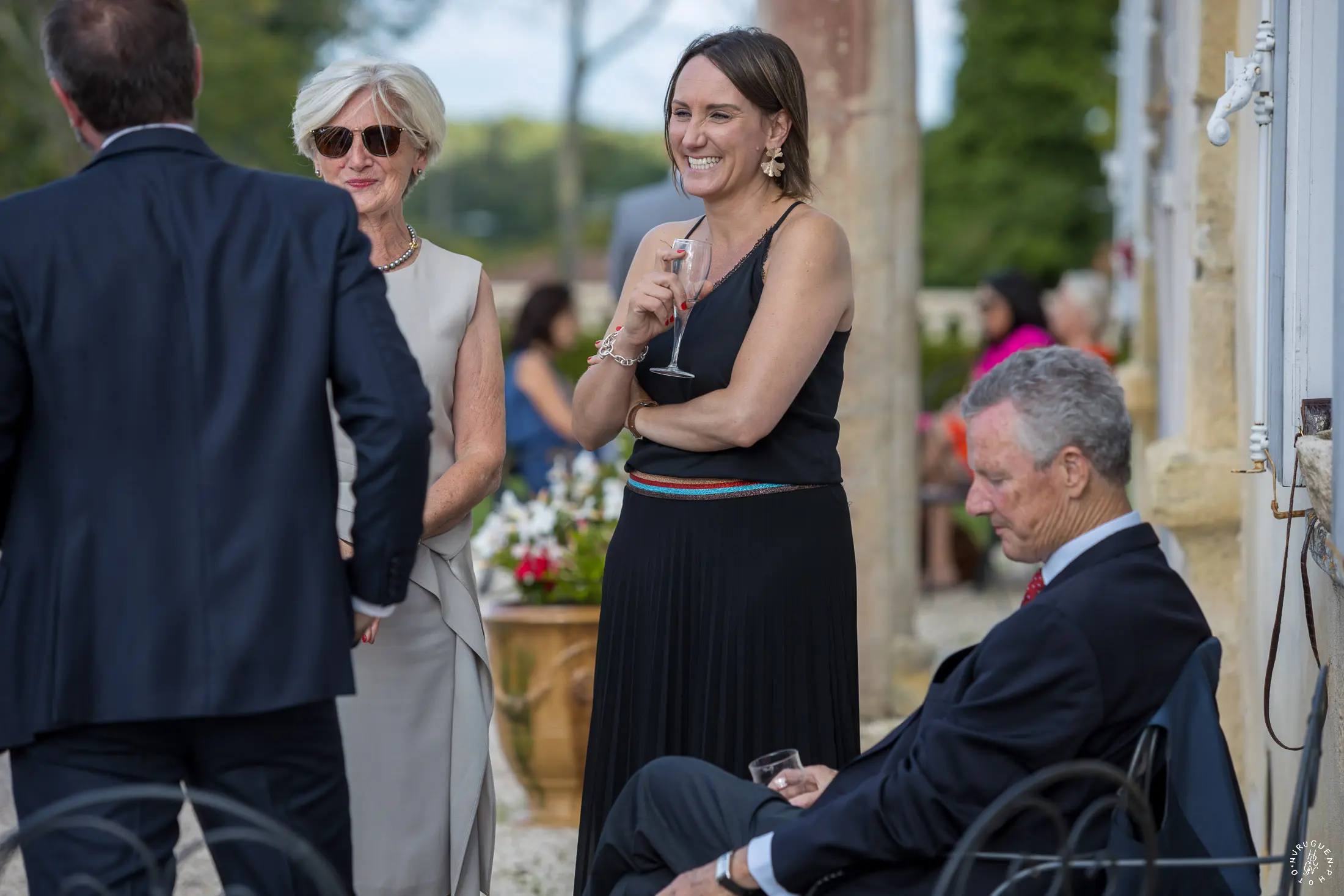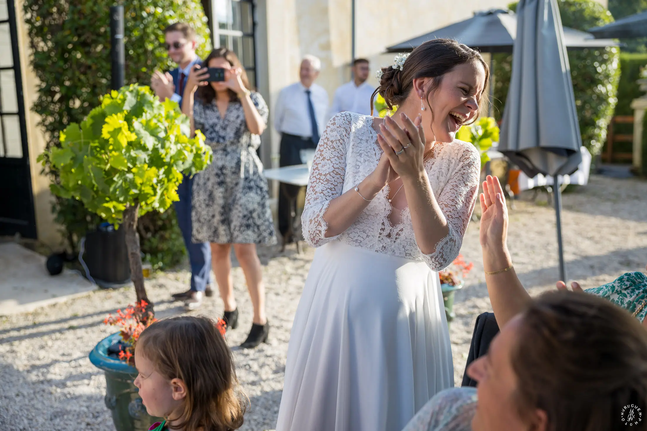 Le vin d’honneur au Château de Lantic, à Martillac, a offert une atmosphère plus détendue et conviviale. Dans les jardins du domaine, la lumière douce et les retrouvailles ont permis de prolonger cette journée unique. Entre rires, discussions et instants spontanés, ce moment fut idéal pour raconter l’histoire de ce mariage à travers des images authentiques.