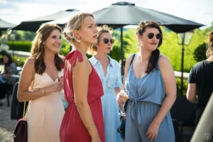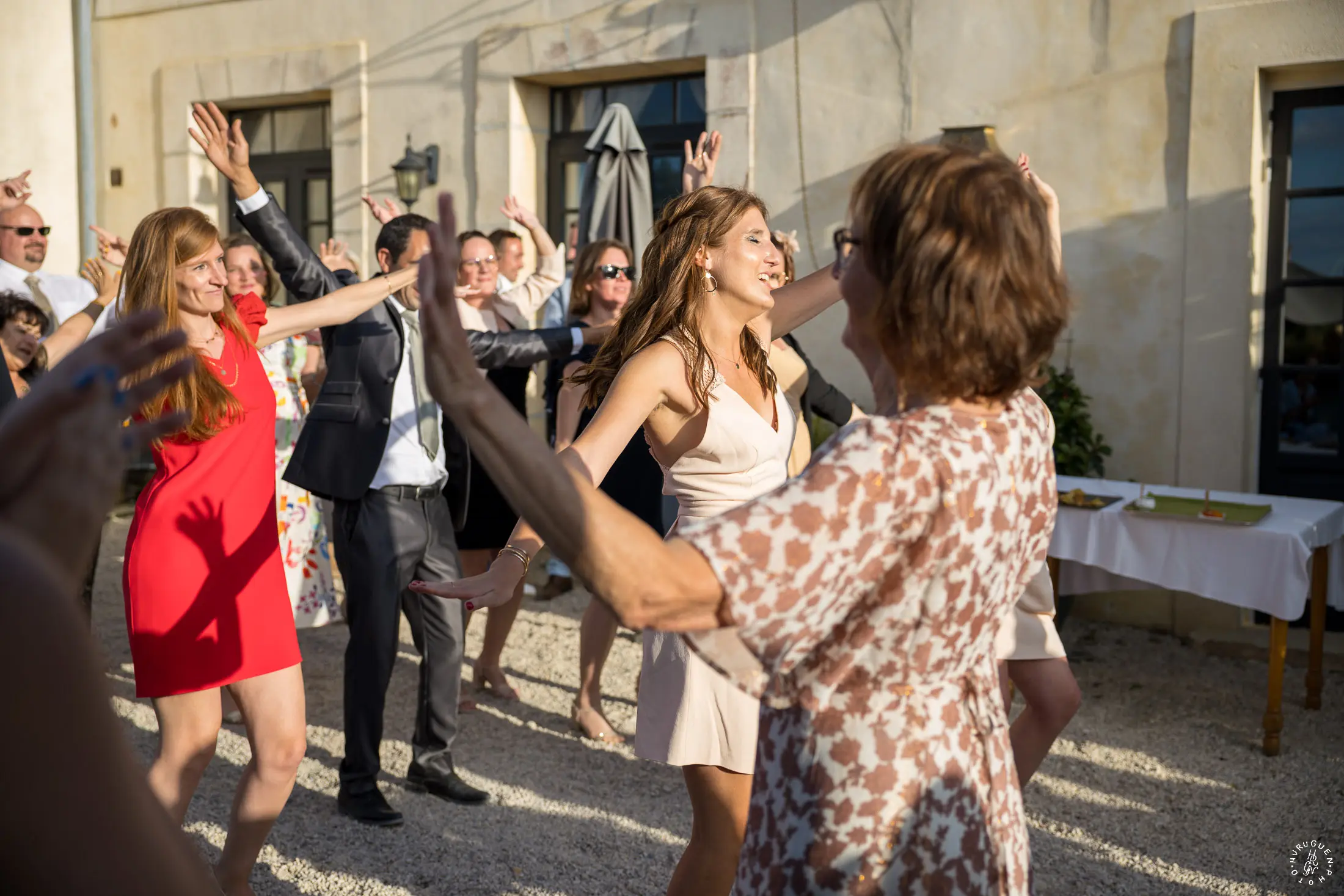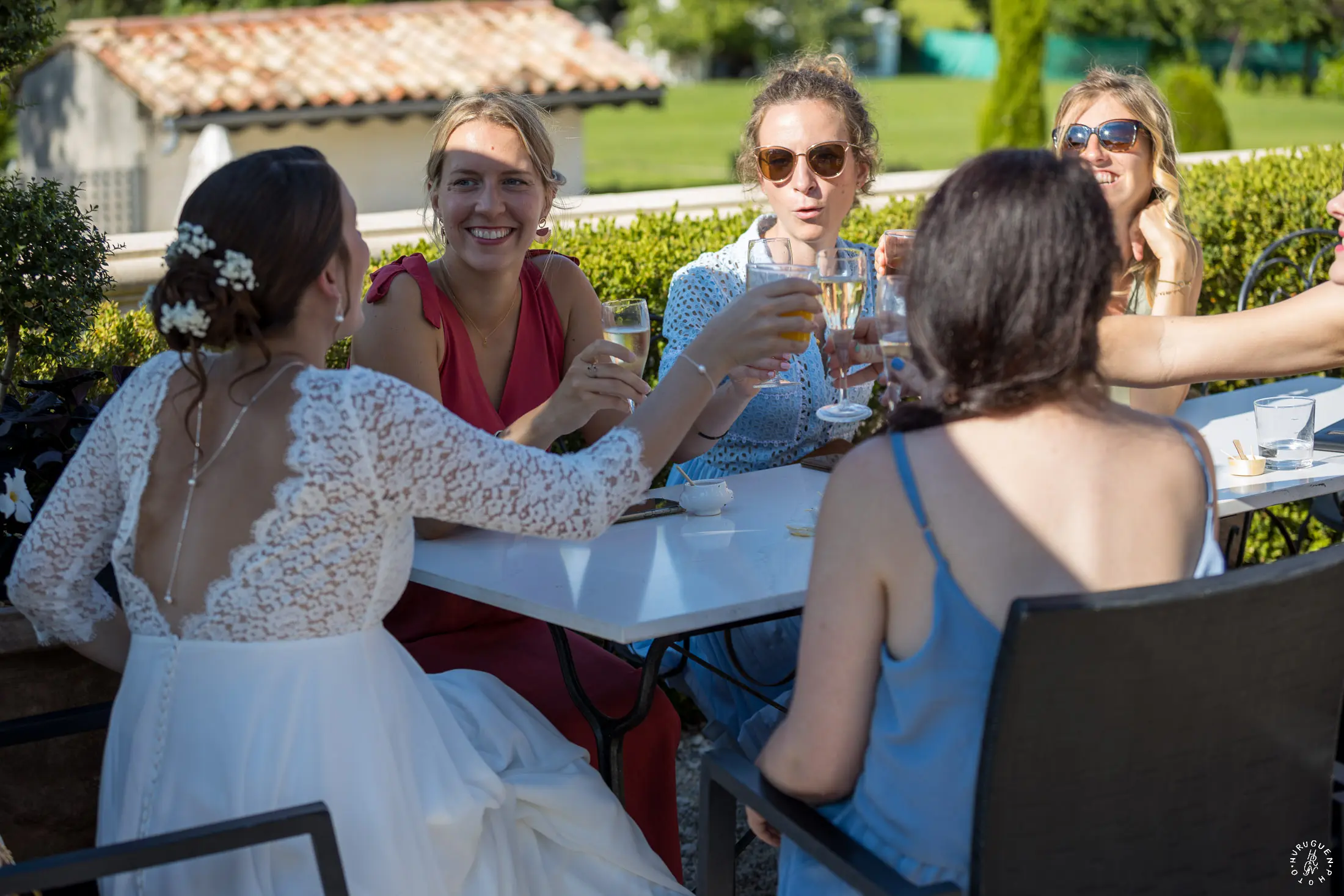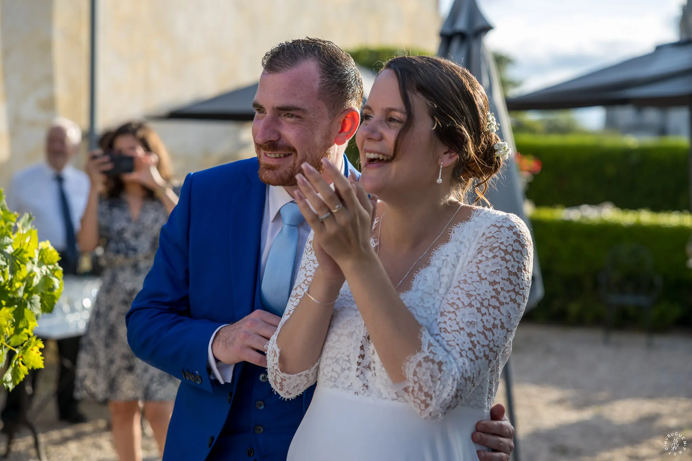Le vin d’honneur au Château de Lantic, à Martillac, a offert une atmosphère plus détendue et conviviale. Dans les jardins du domaine, la lumière douce et les retrouvailles ont permis de prolonger cette journée unique. Entre rires, discussions et instants spontanés, ce moment fut idéal pour raconter l’histoire de ce mariage à travers des images authentiques.