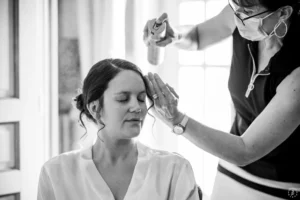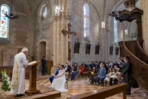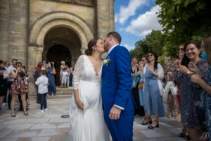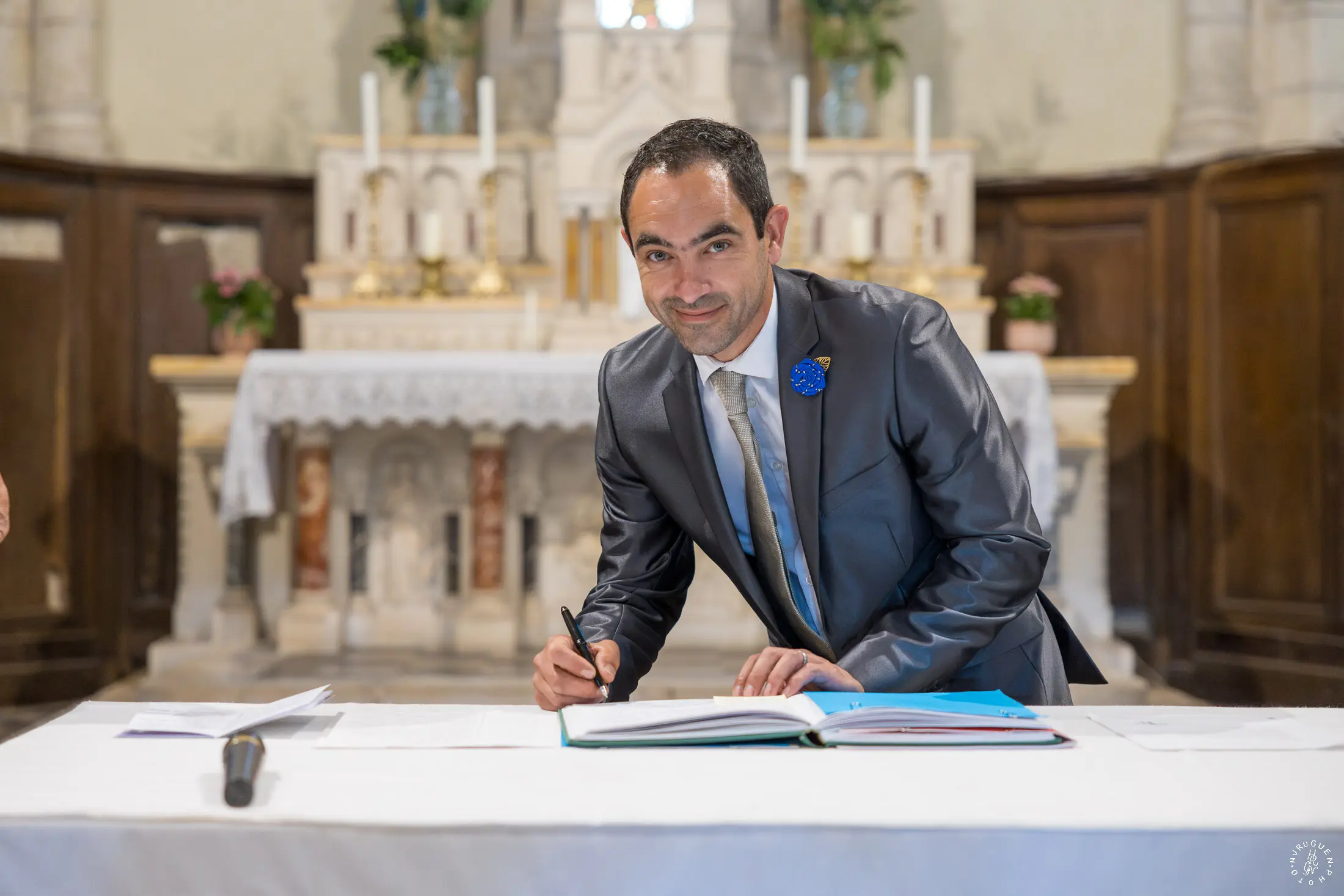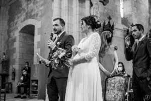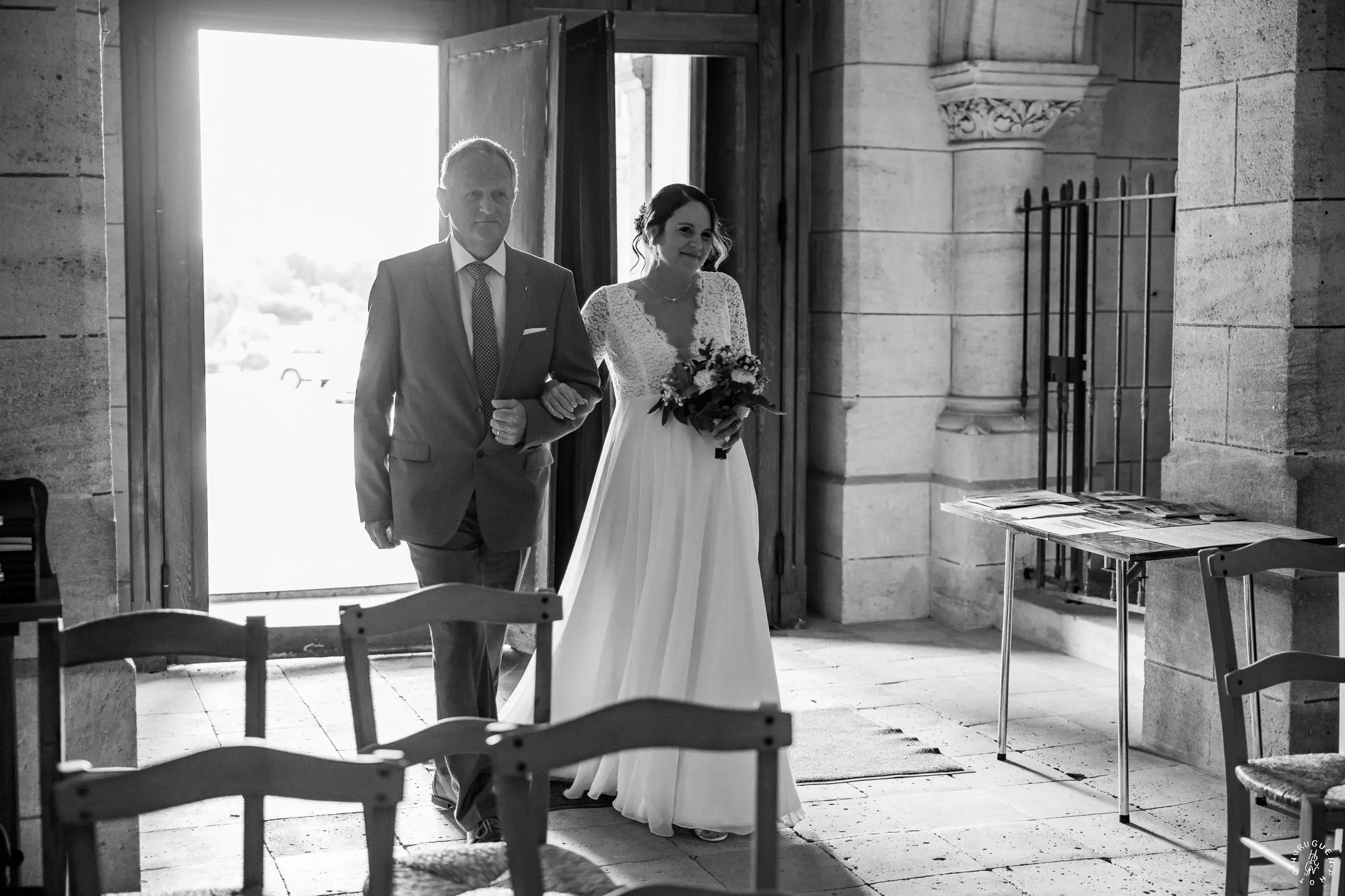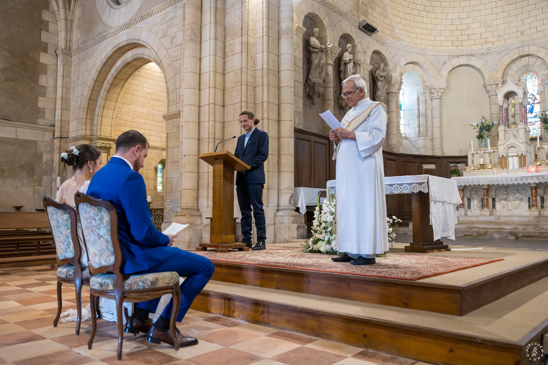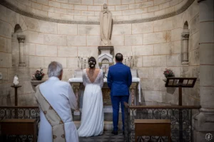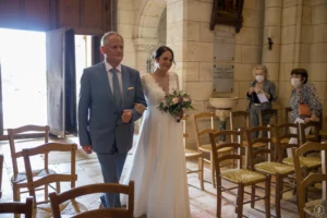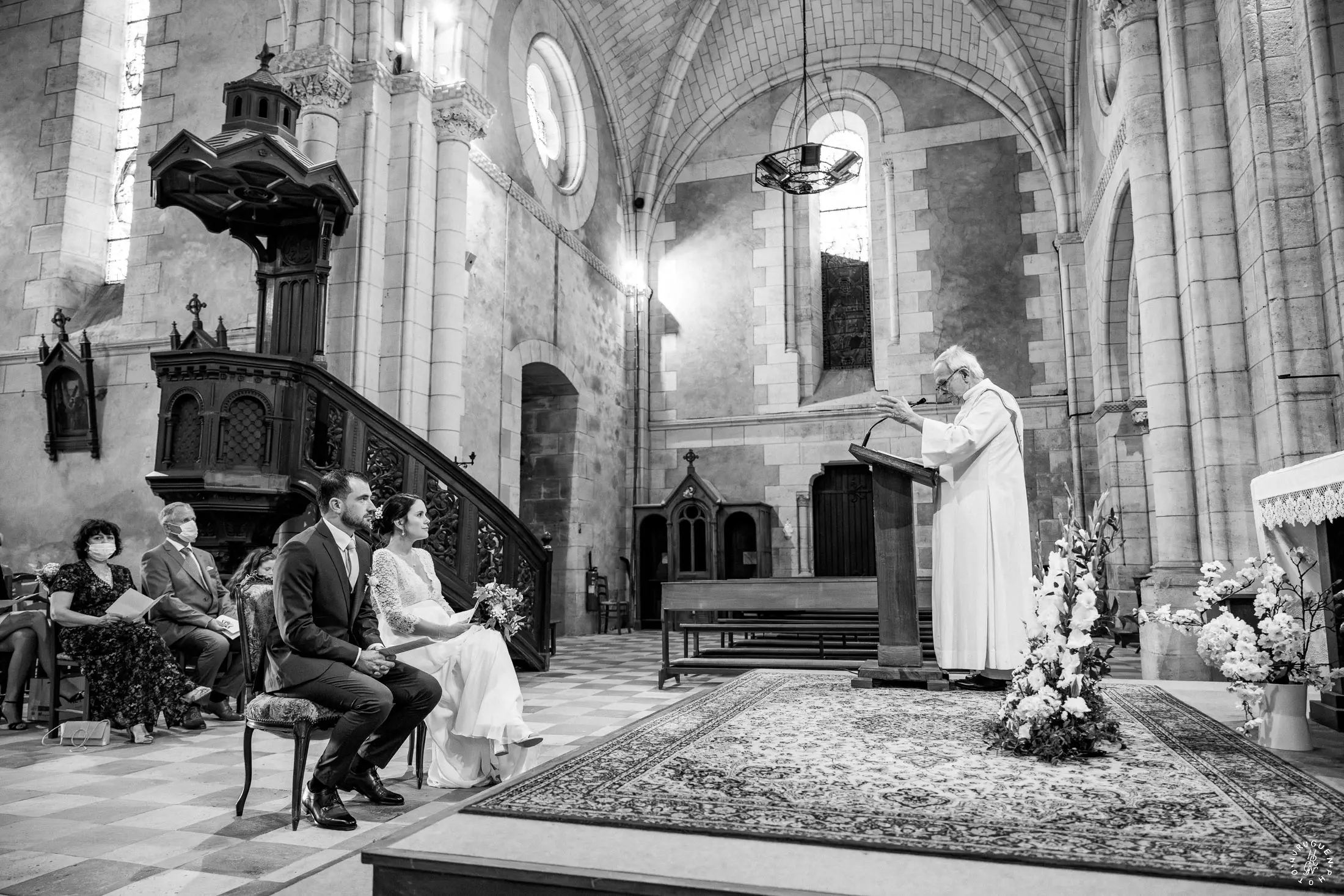 La célébration s’est poursuivie à l’église de Martillac pour une cérémonie religieuse empreinte de recueillement. Là encore, les invités portaient des masques, mais l’intensité des instants vécus restait intacte. Chaque moment fort, chaque échange et chaque émotion ont été capturés dans un esprit de reportage naturel et discret.
