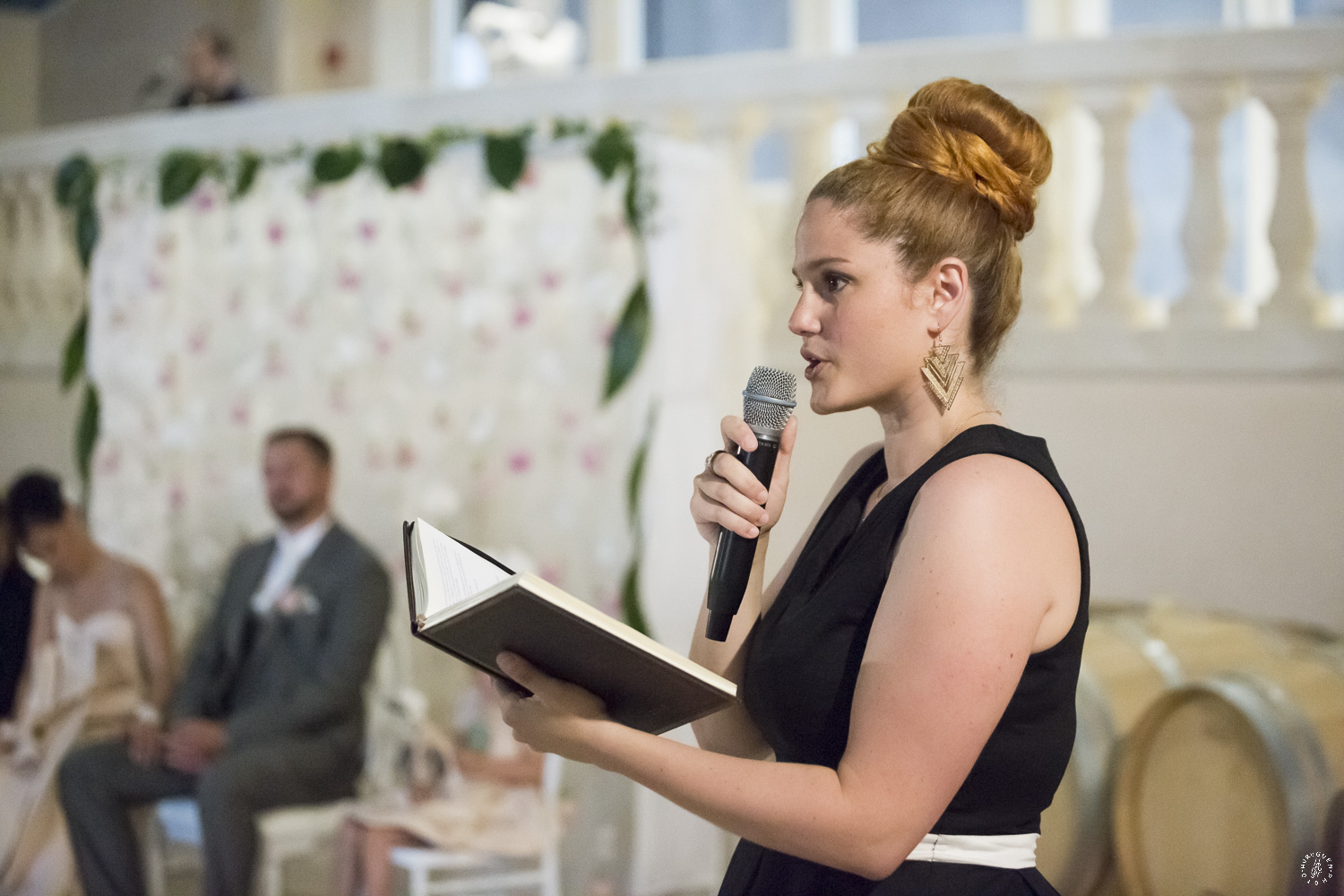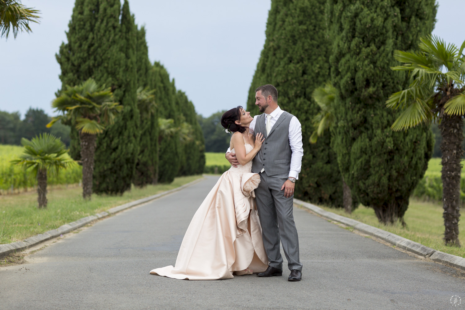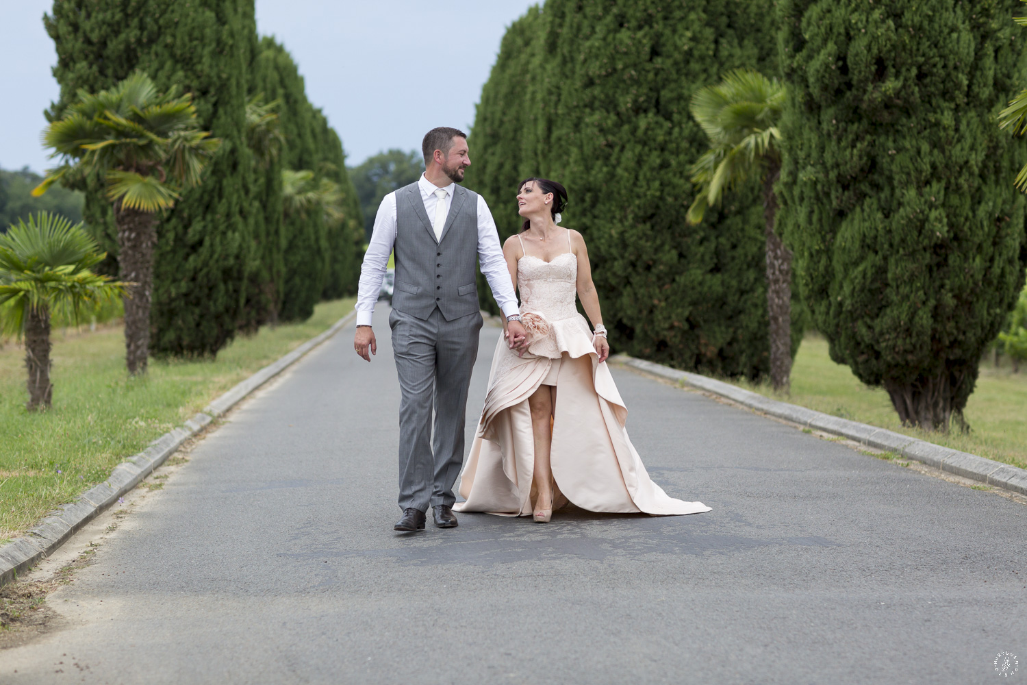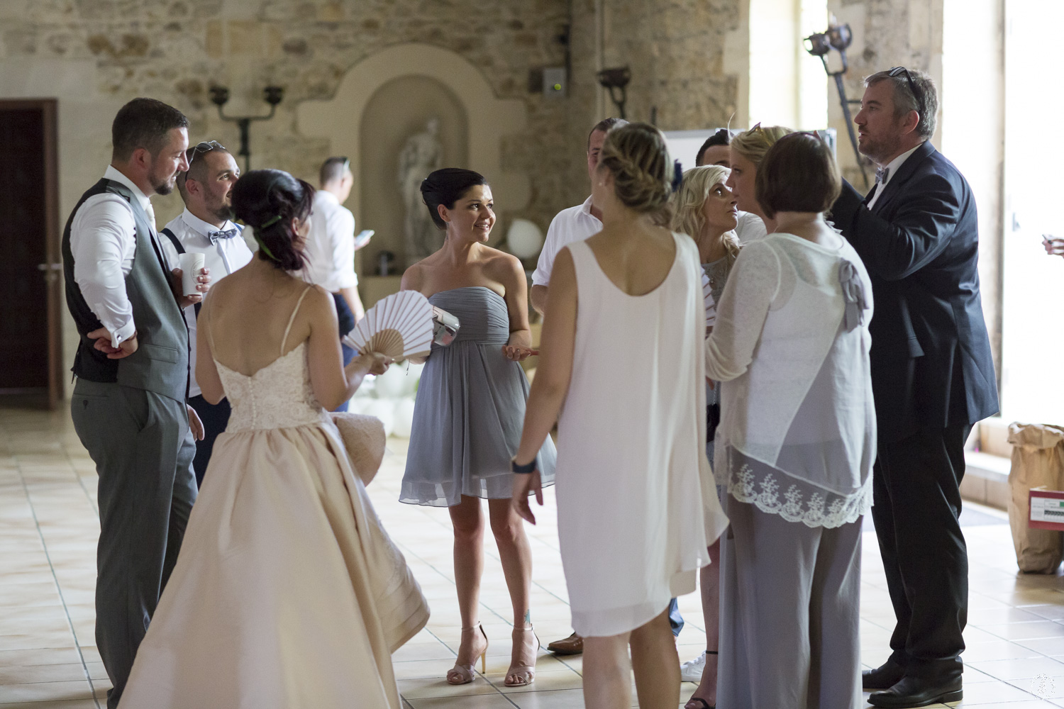 Le cortège a ensuite rejoint la rive droite, direction Yvrac. Le Château Lafitte nous a ouvert les portes de son majestueux chai pour une cérémonie laïque poignante, menée avec brio par Serial Noceuse.
