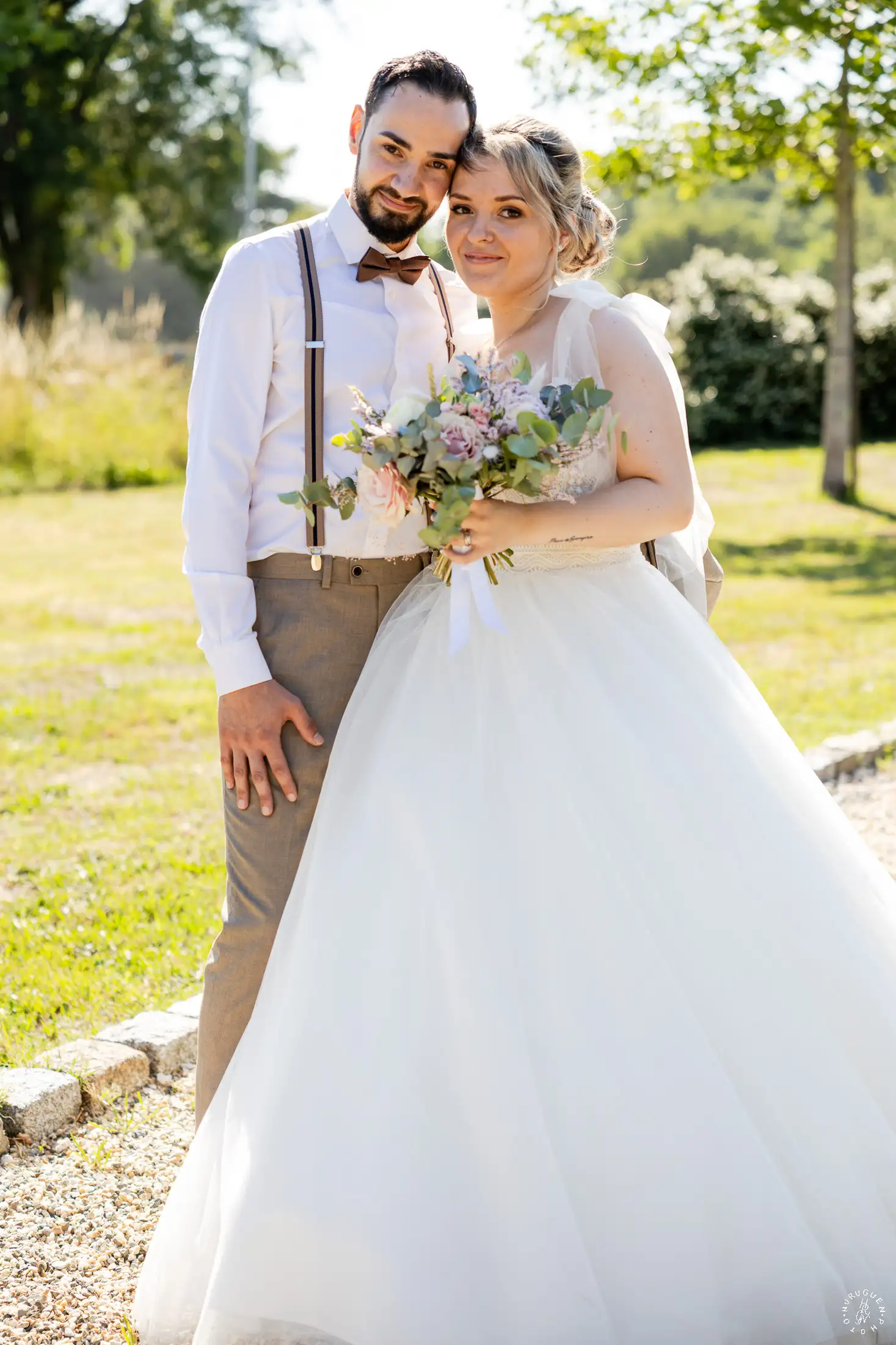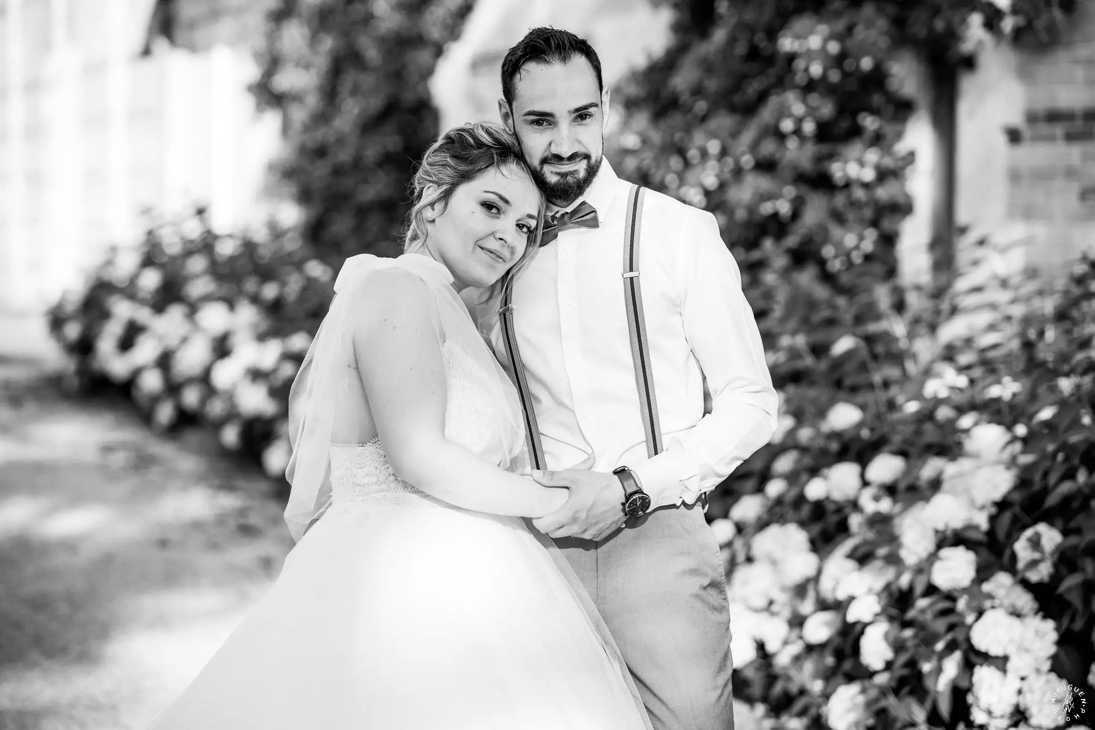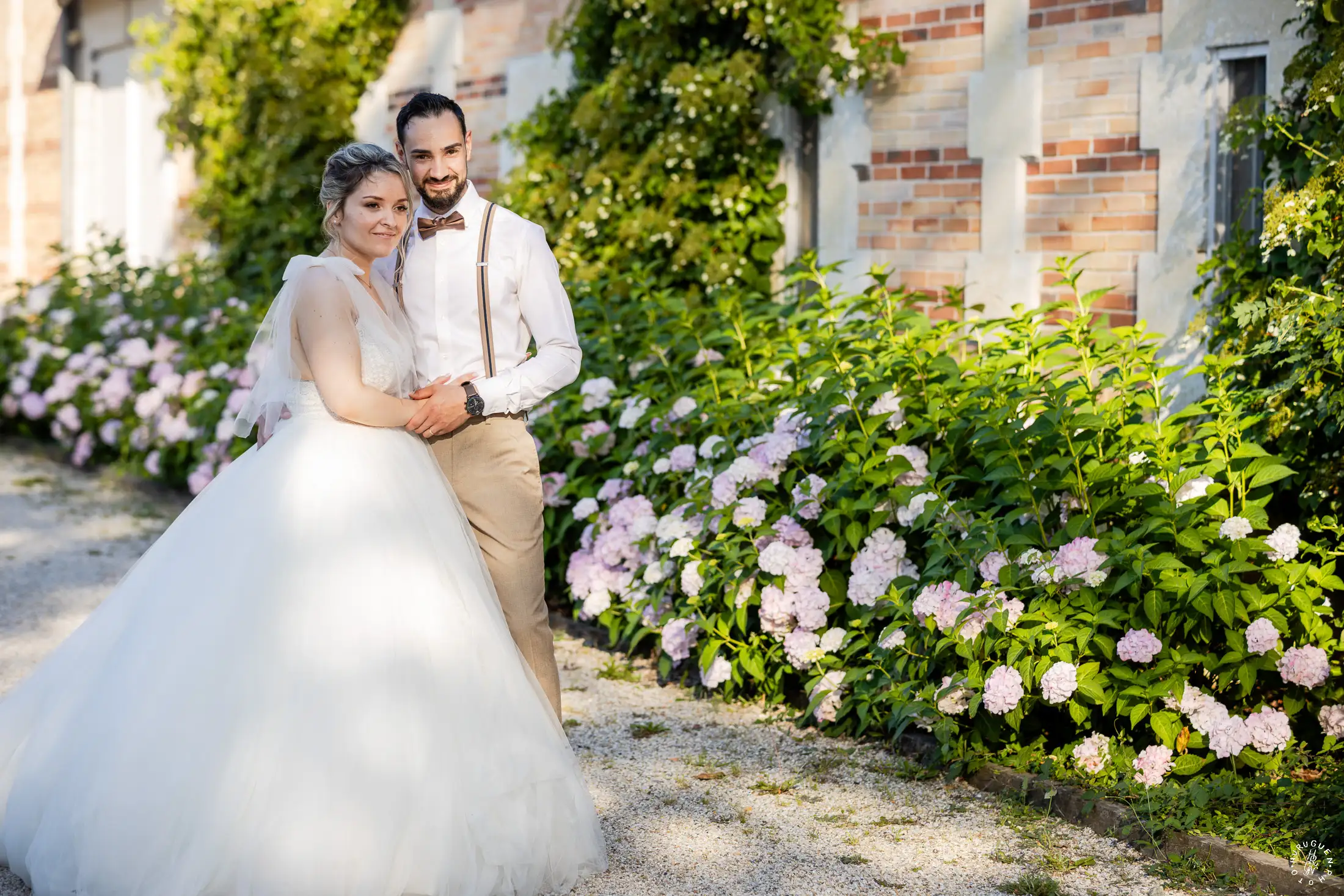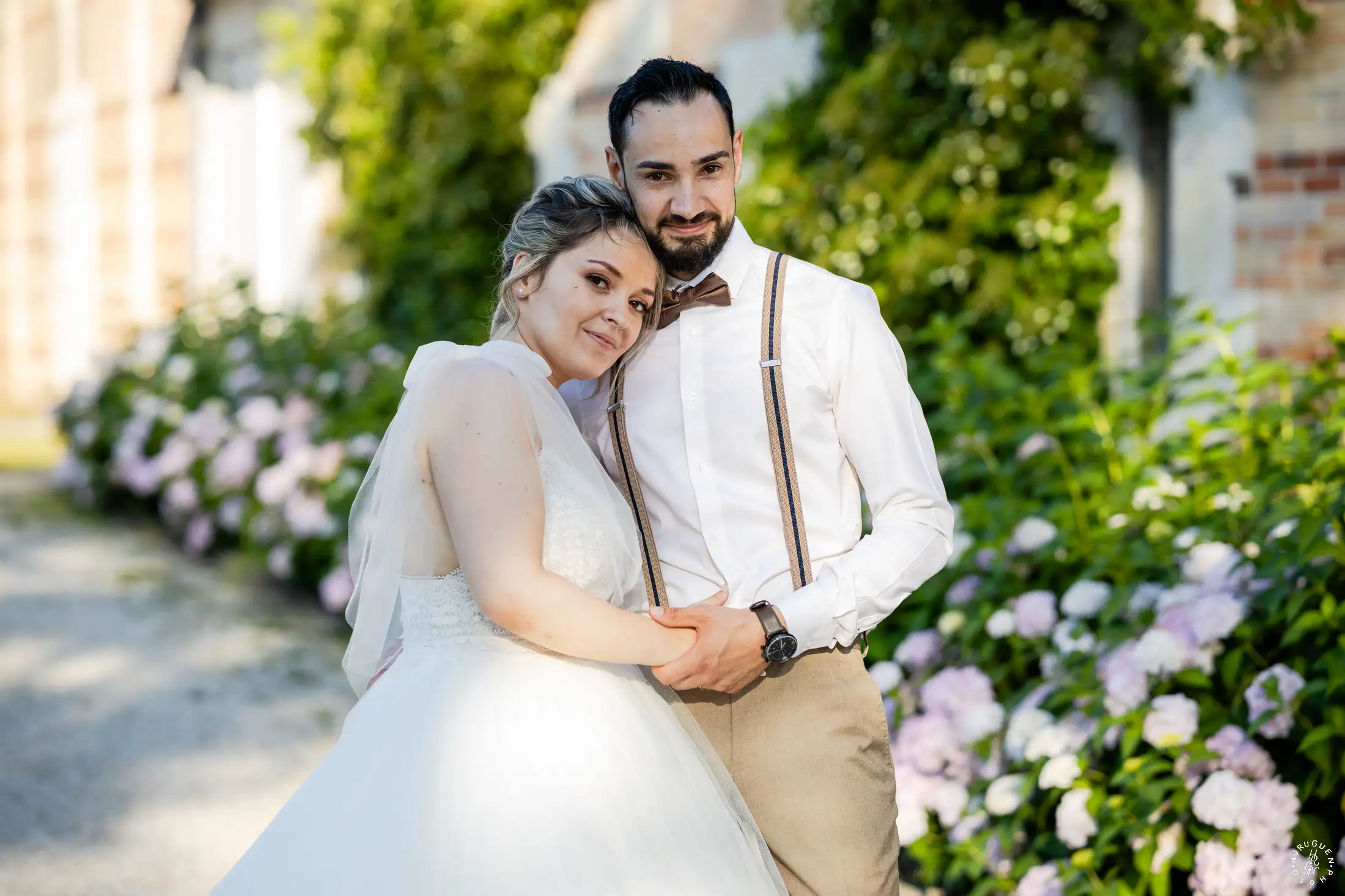 C’est dans ce cadre que nous avons réalisé quelques portraits de couple, profitant de la lumière de fin d’après-midi qui venait sublimer les jardins et la complicité naturelle de L & N.