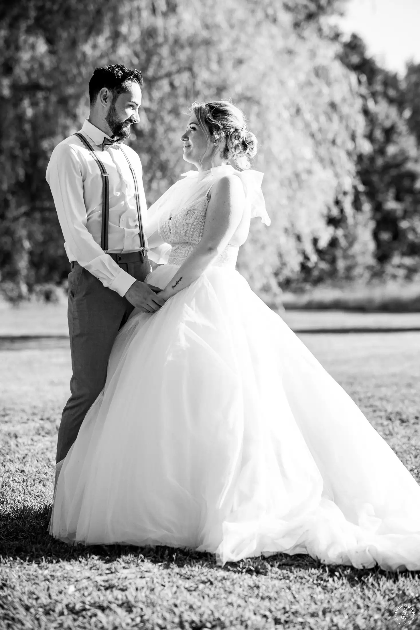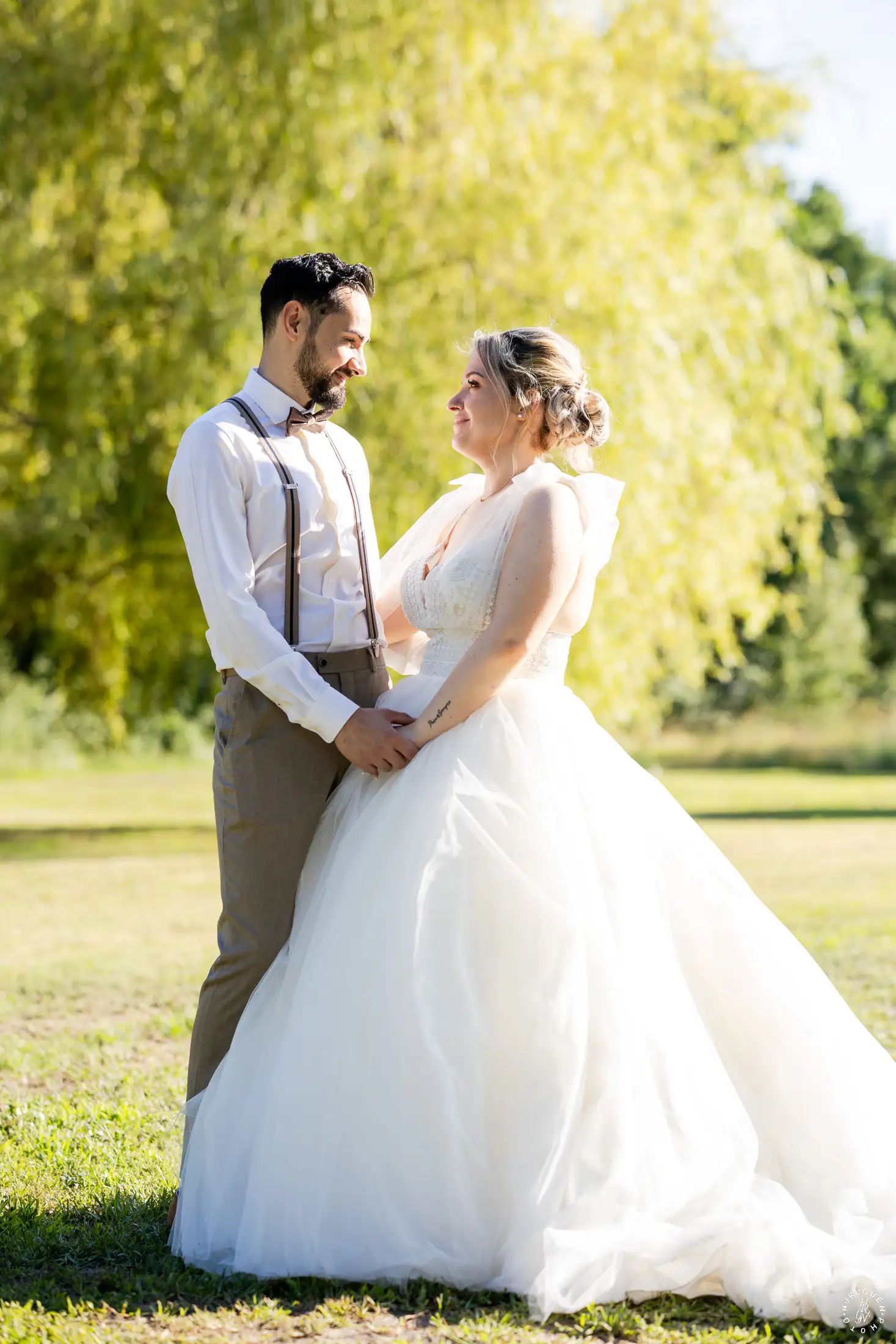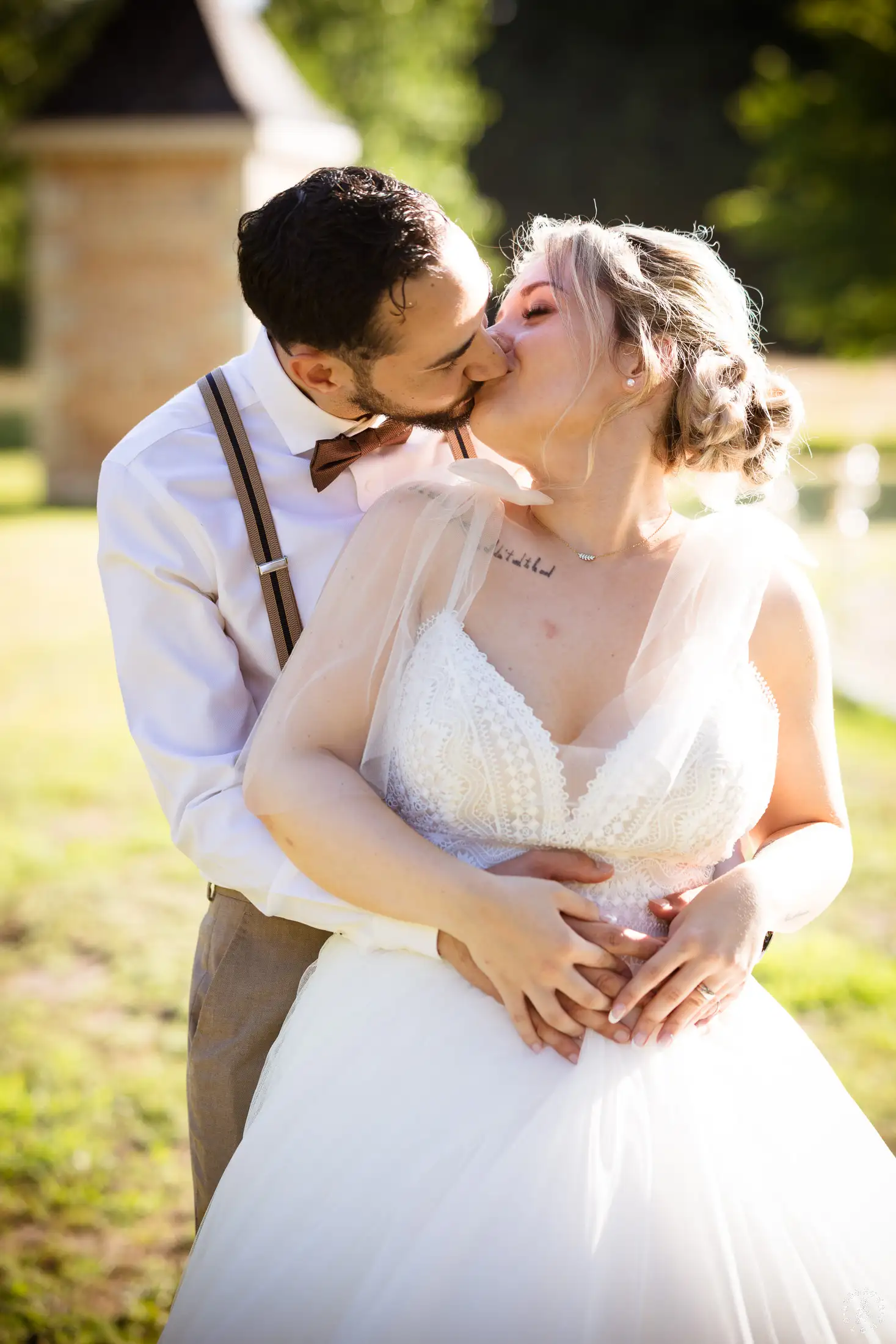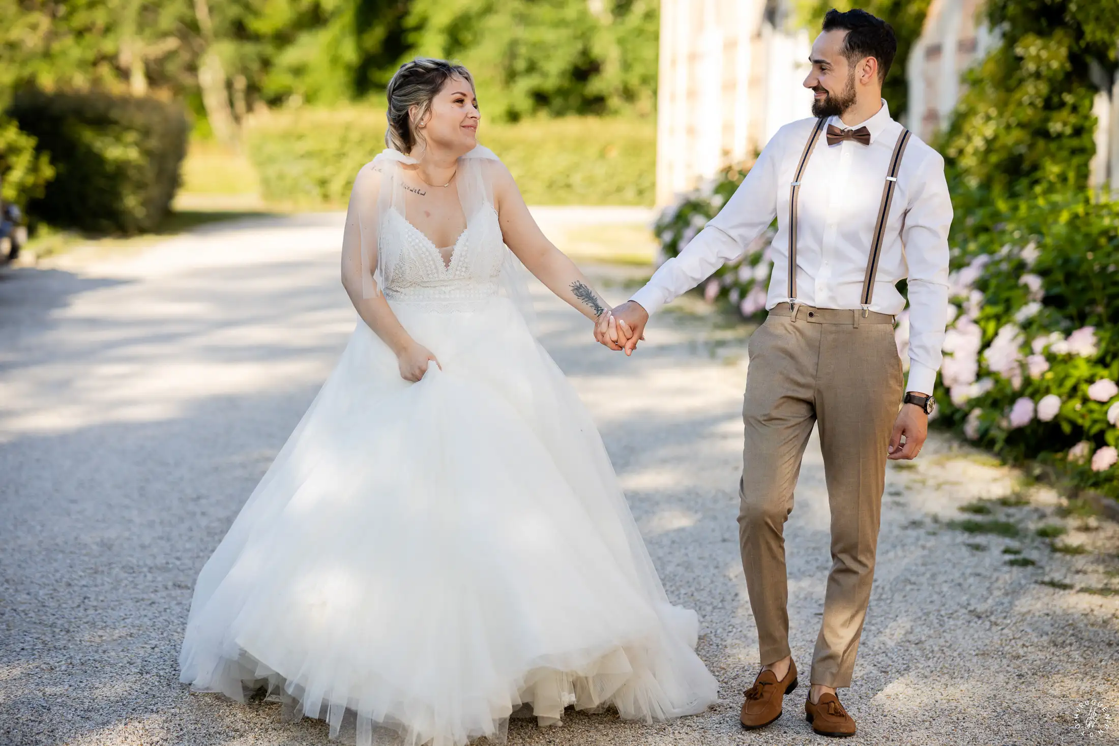 C’est dans ce cadre que nous avons réalisé quelques portraits de couple, profitant de la lumière de fin d’après-midi qui venait sublimer les jardins et la complicité naturelle de L & N.