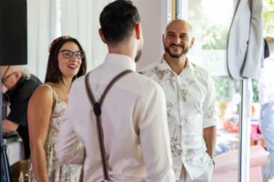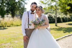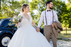 Une célébration lumineuse où chaque détail, de la voiture ancienne au buffet artisanal, soulignait l’investissement personnel des mariés.