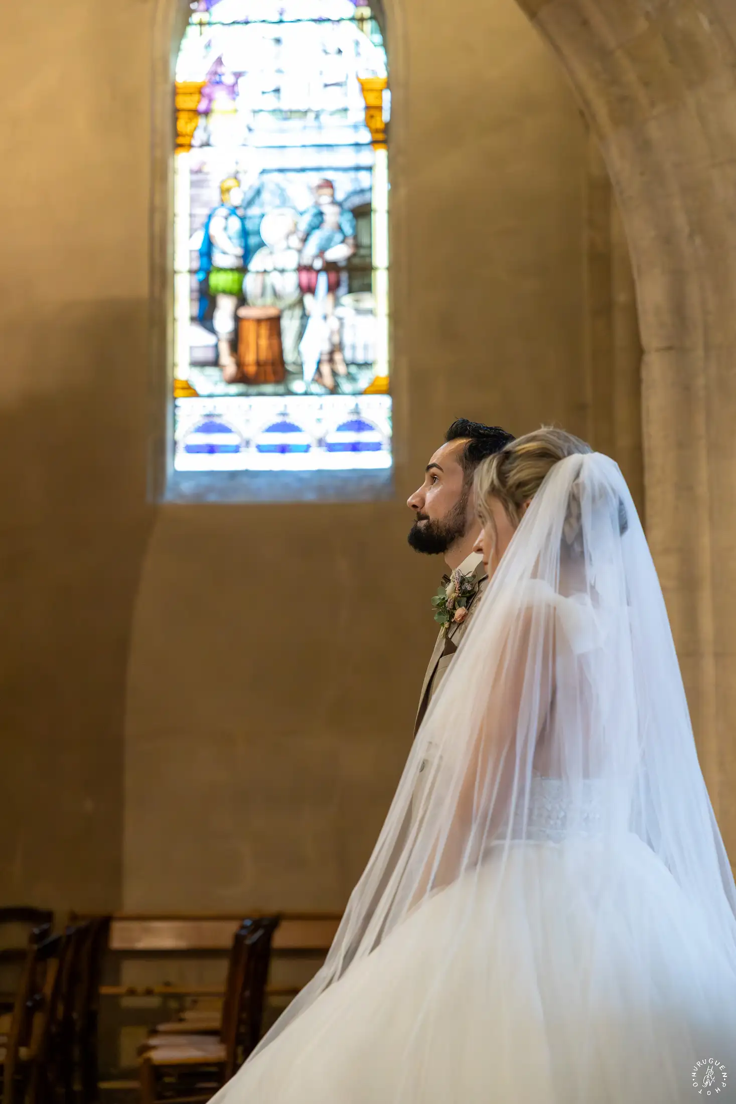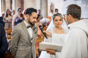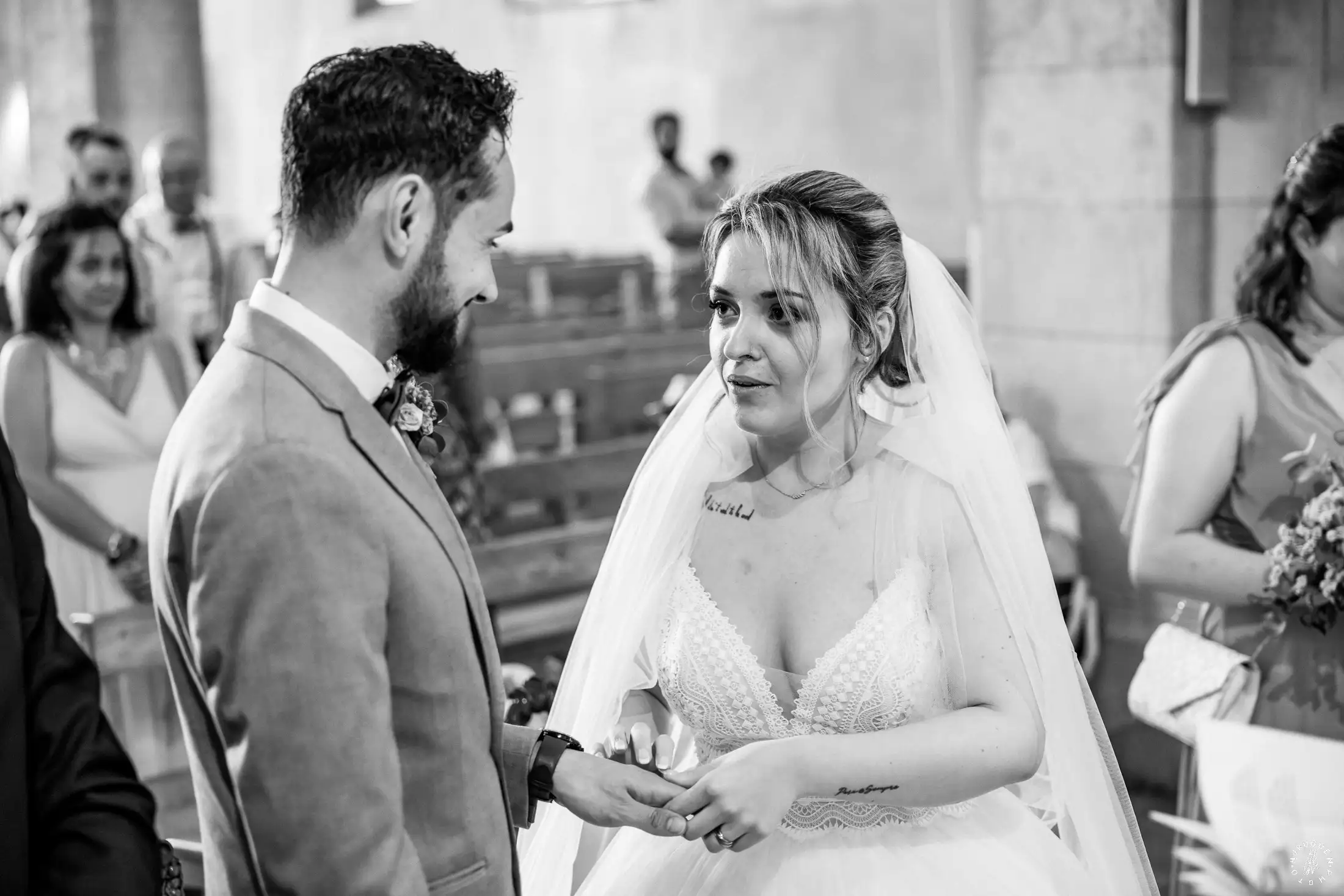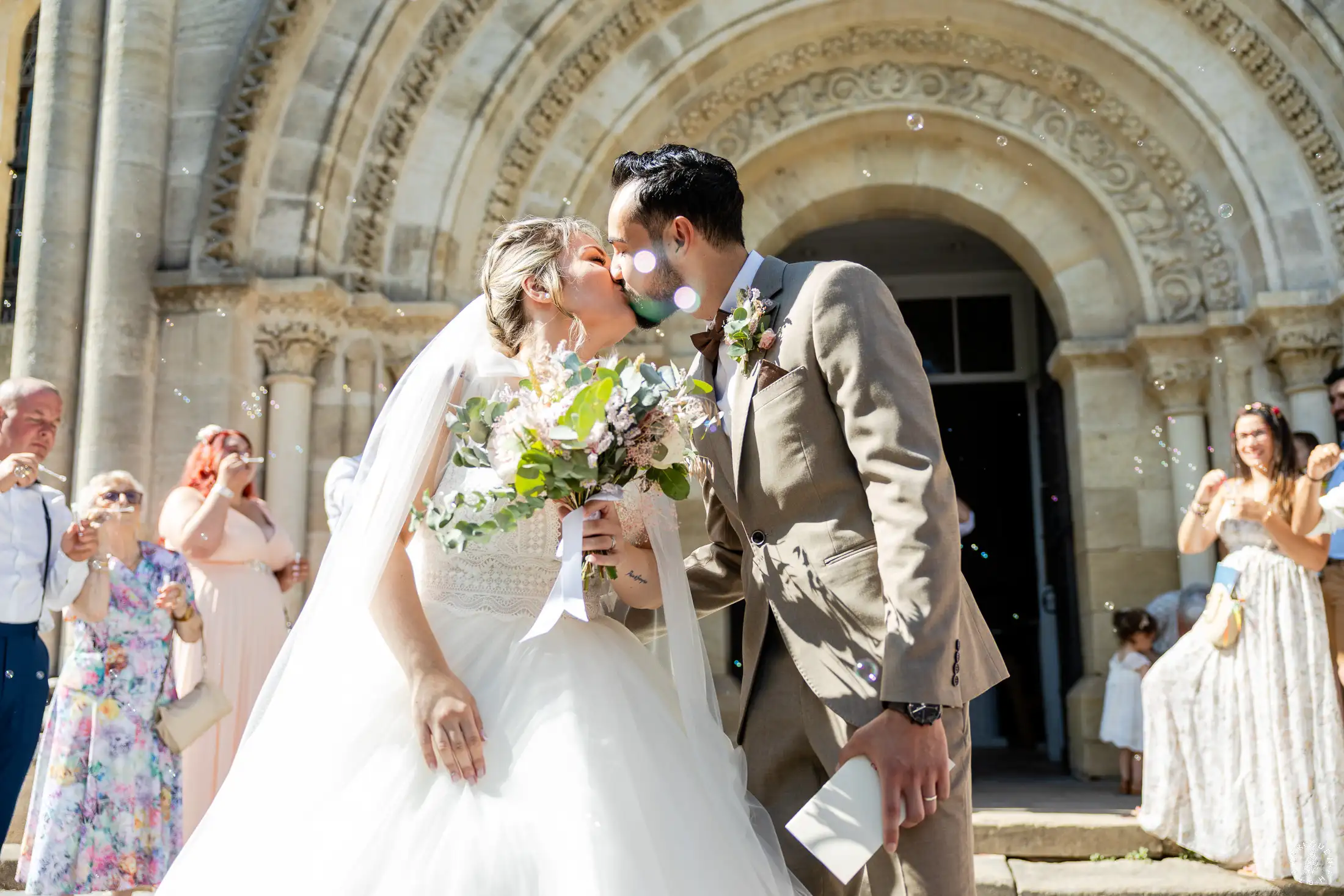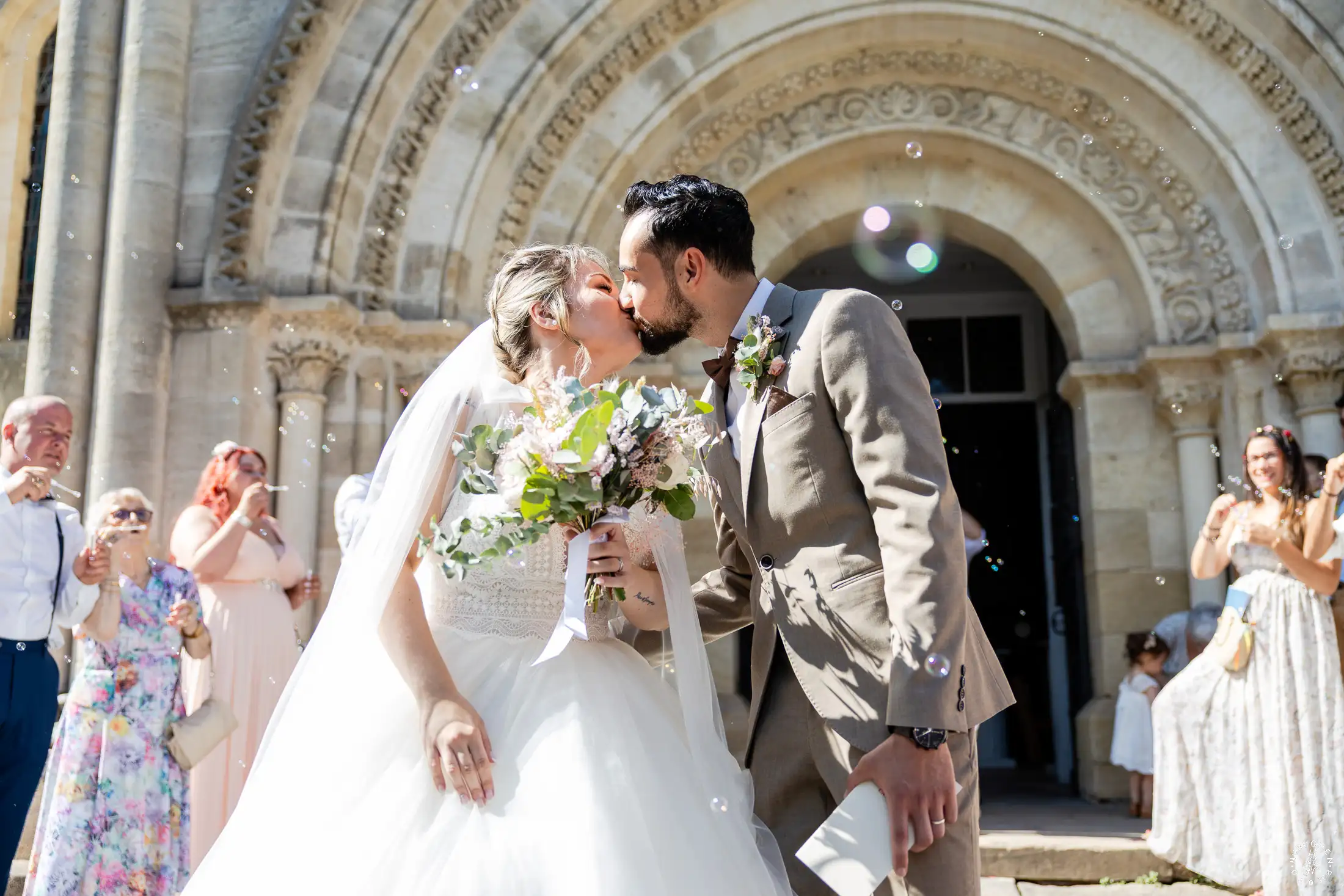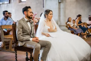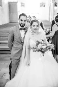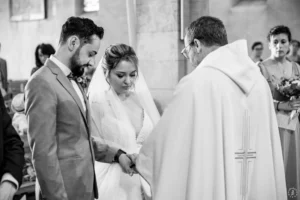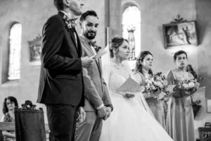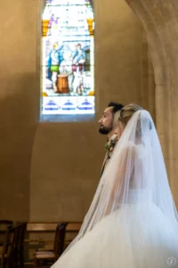 L’église de Saint-Médard-en-Jalles a offert un cadre magnifique pour capturer les regards complices du couple.