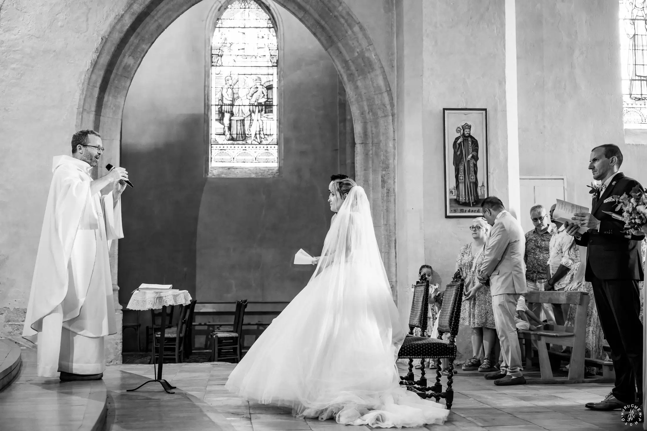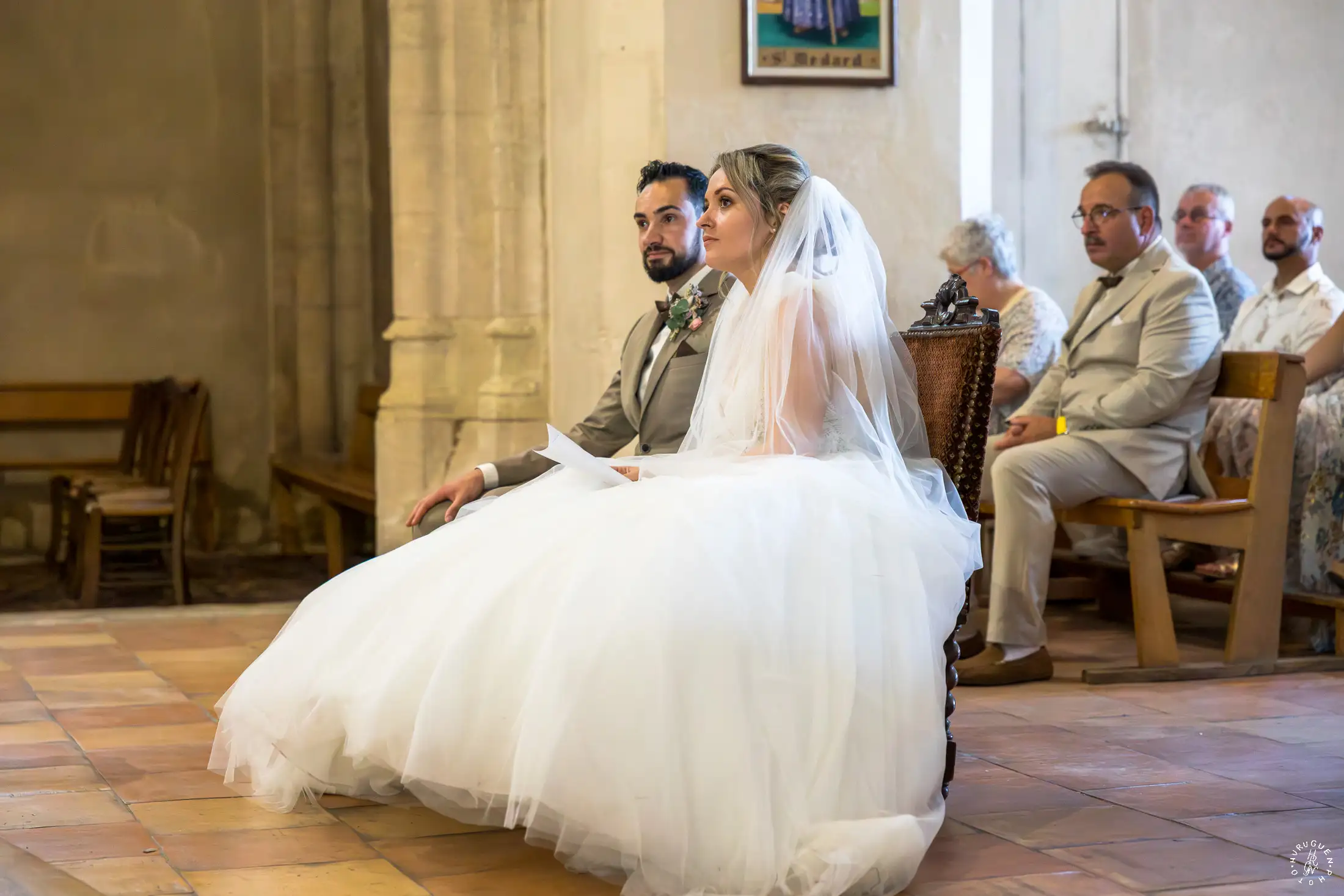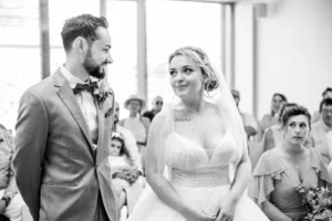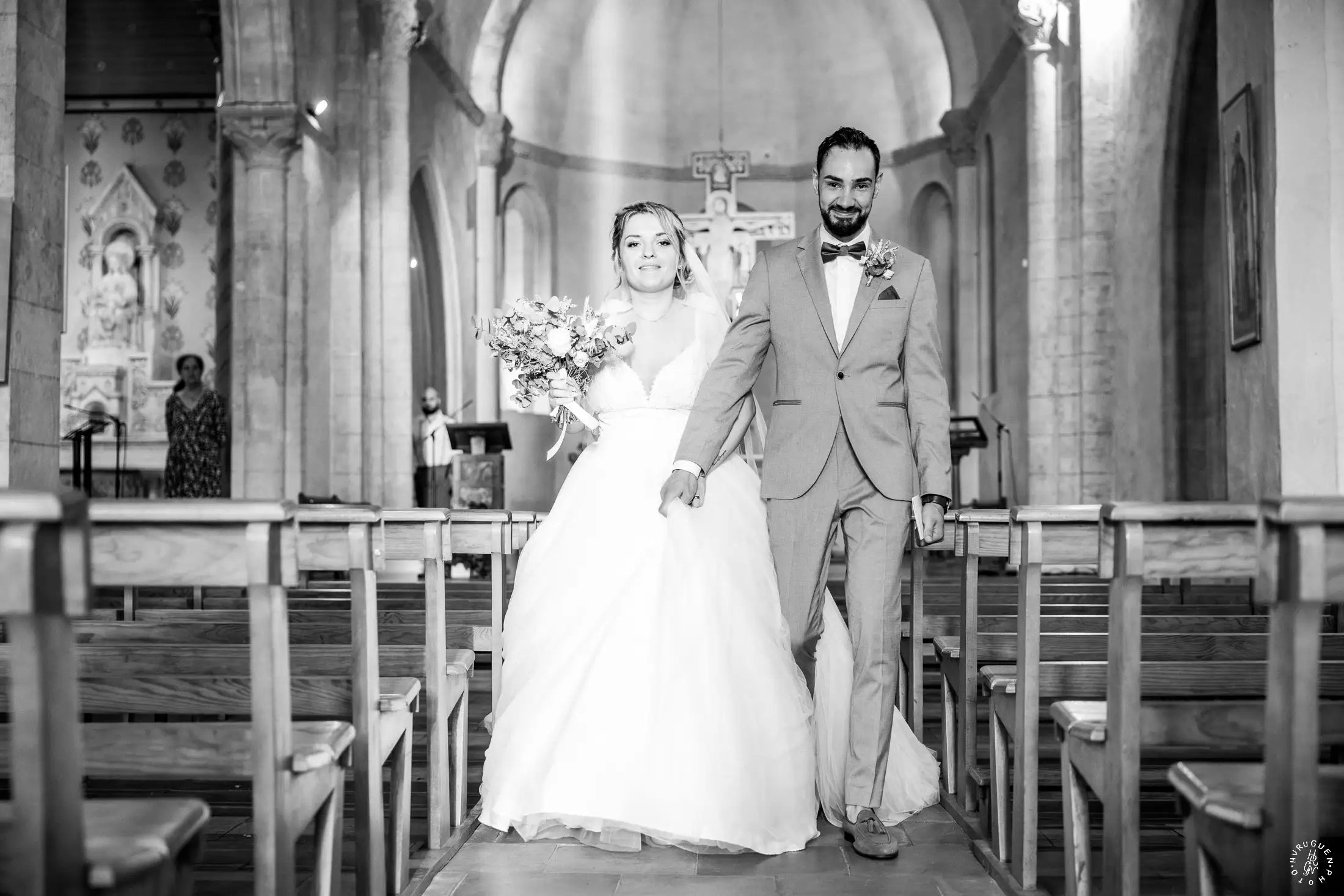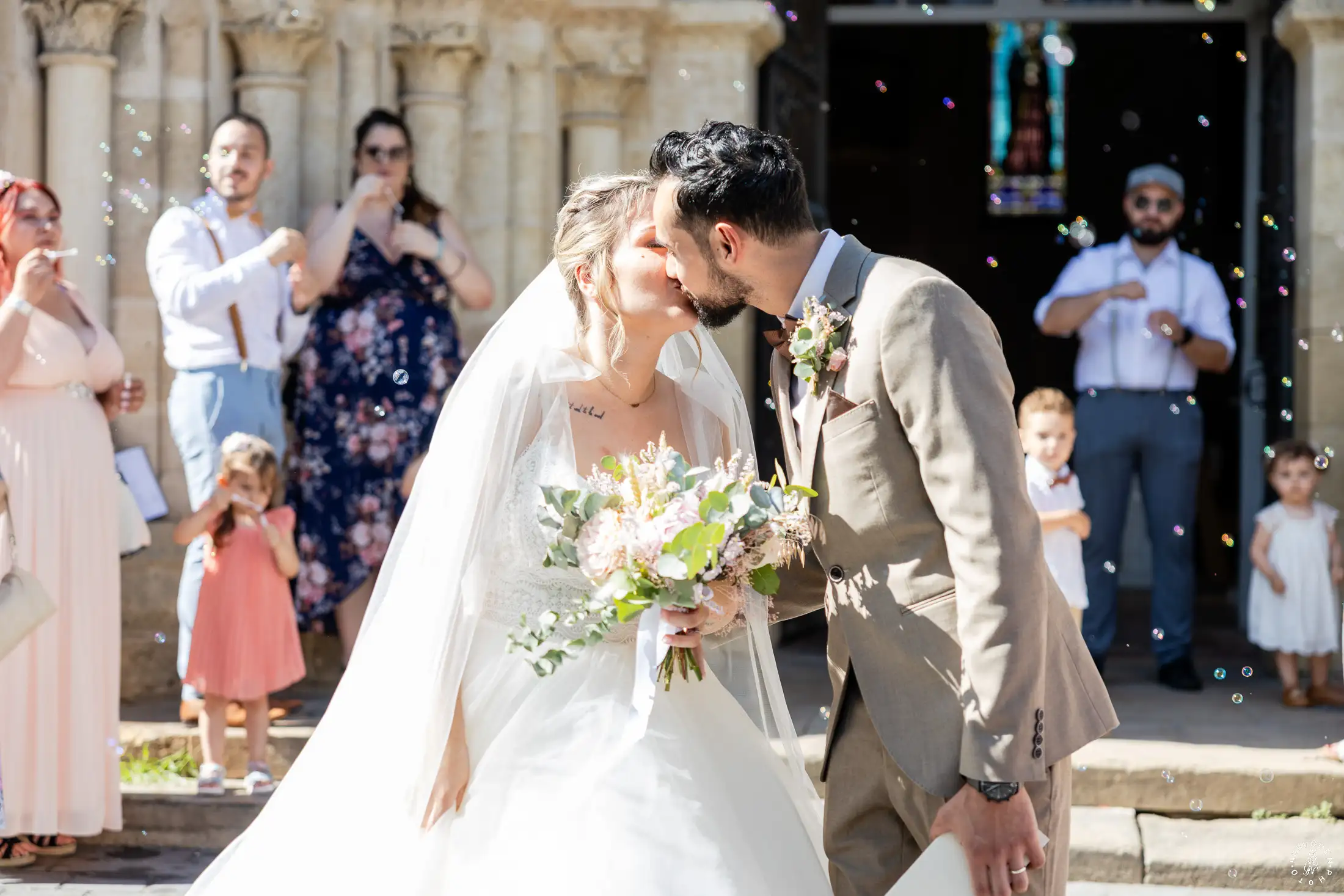 L’église de Saint-Médard-en-Jalles a offert un cadre magnifique pour capturer les regards complices du couple.