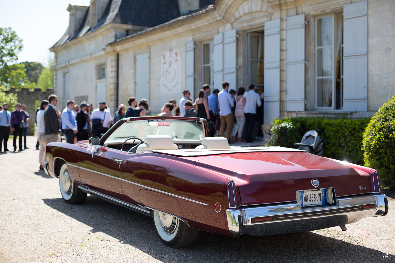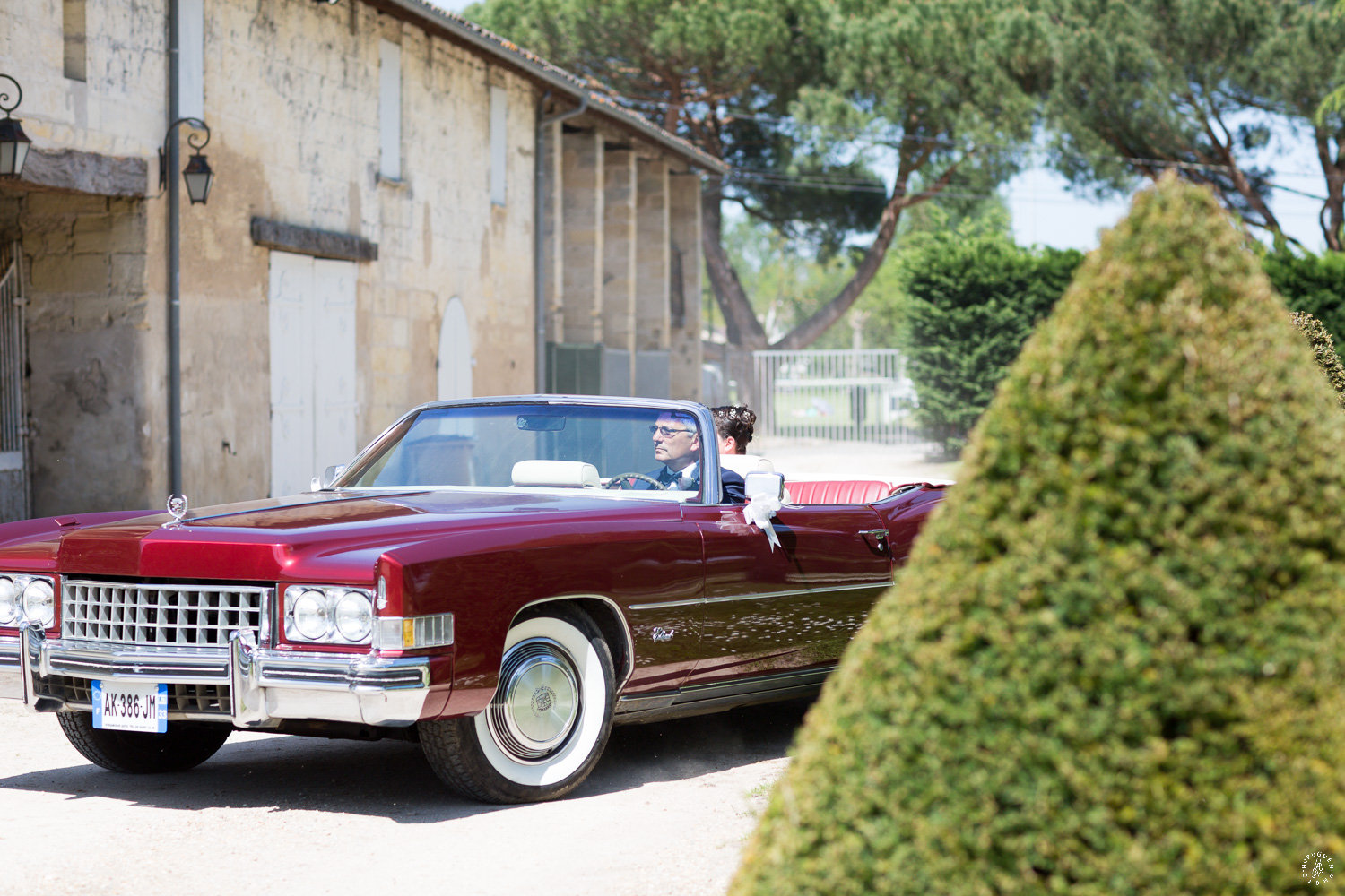 Une arrivée remarquée pour la future mariée, dans une magnifique Cadillac Eldorado cabriolet conduite par son père jusqu’aux marches de la mairie de Saint Denis de Pile.