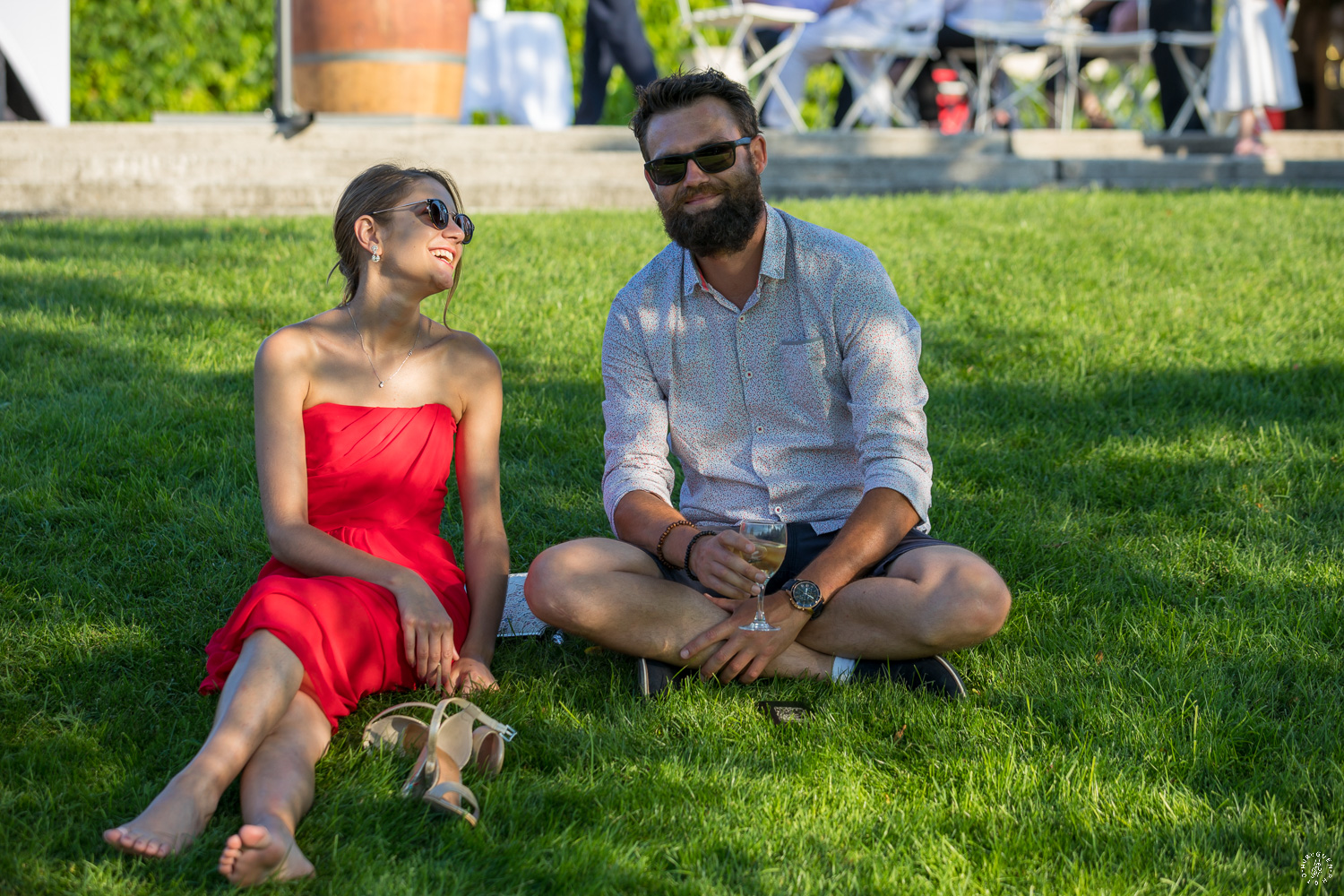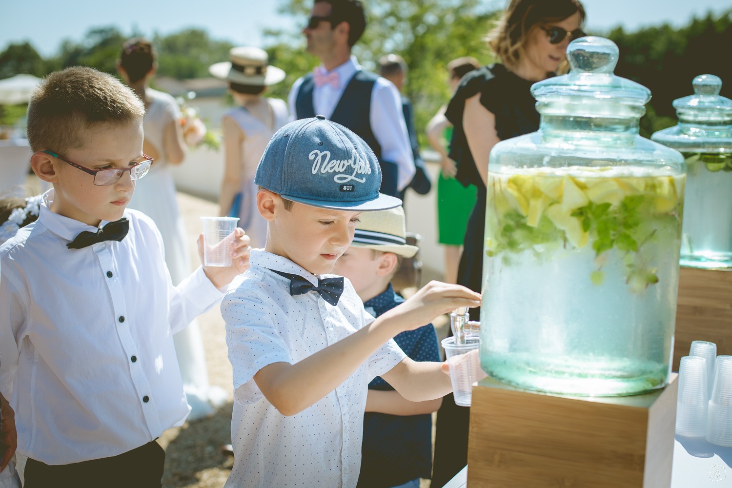 Après un rafraichissement sur la terrasse du Château, les convives se sont réunis dans les jardins de la propriété pour assister à la cérémonie laïque.