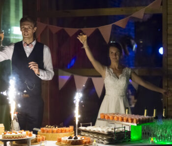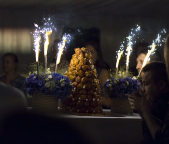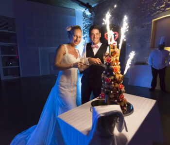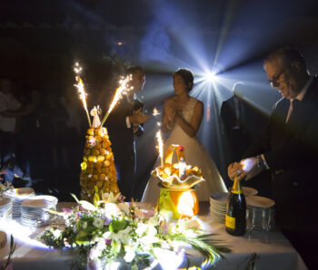 L’arrivée du gâteau : La mise en scène lumineuse, les fontaines de feu et la joie qui accompagne ce moment de partage gourmand.