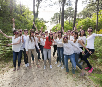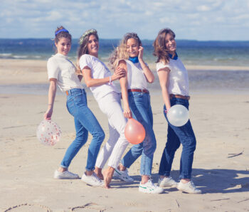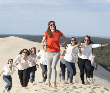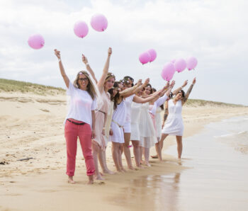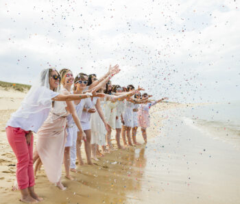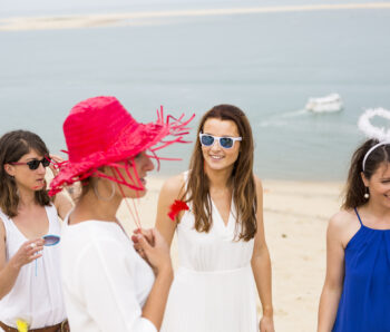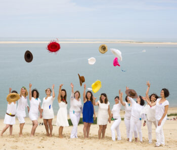 La région offre une multitude de décors pour votre shooting EVJF. Nous pouvons investir les quais de Bordeaux pour un style urbain, le Jardin Public pour une ambiance plus douce et bucolique, ou même nous échapper vers les plages du Cap Ferret pour une session « Beach Party » les pieds dans le sable.
